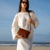 Découvrez ce sac AELA, à bandoulière , il capte le regard par son design structuré , la richesse de son cuir de vachette suède et la lumière apporté par ses détails dorés.
