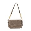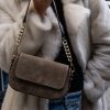 Sac à bandoulière en cuir avec poche intérieure zippée, fermeture principale à clip, bandoulière amovible avec détail en chaîne et sangle amovible et réglable.