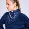 Maison Héritage propose une nouvelle version de son écharpe iconique, réinterprétant le traditionnel bandana dans une version sophistiquée en 100% cachemire, autour d’une ode à l’amour de coeurs. Cette écharpe est à porter nouée sur un pull ou sur une veste, idéal à associer avec notre veste trompe l’oeil Denim Cachemire Jade.