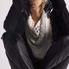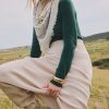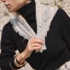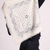 Maison Héritage propose une nouvelle version de son écharpe iconique Irma, réinterprétant le traditionnel bandana dans une version sophistiquée en 100% cachemire, autour d’une ode à l’amour de coeurs. Cette écharpe est à porter nouée sur un pull ou sur une veste, idéal à associer avec notre veste trompe l’oeil Denim Cachemire Jade.