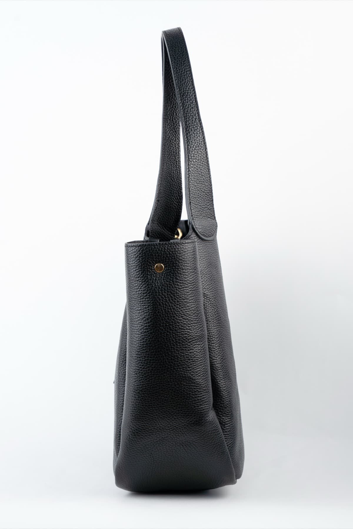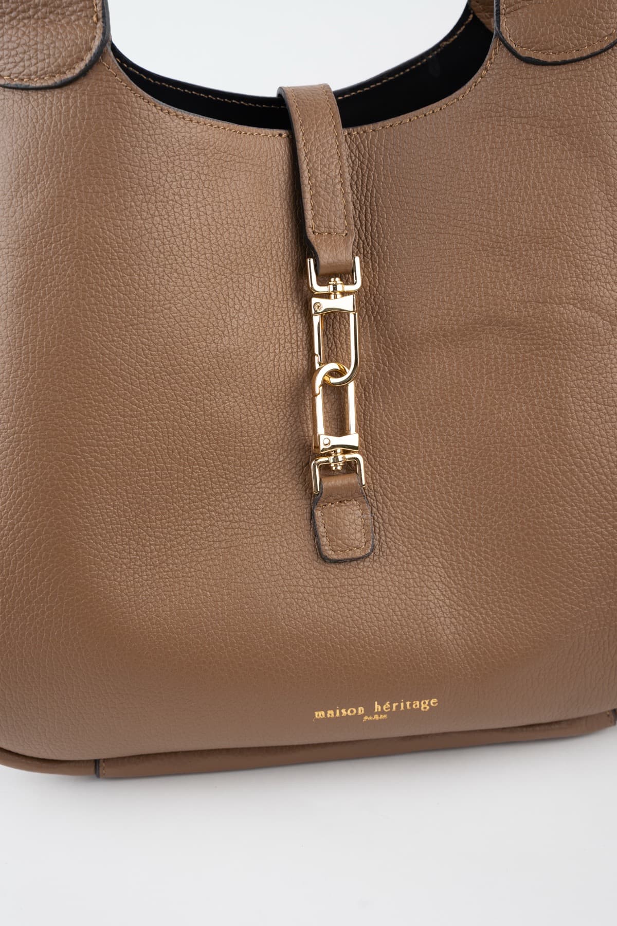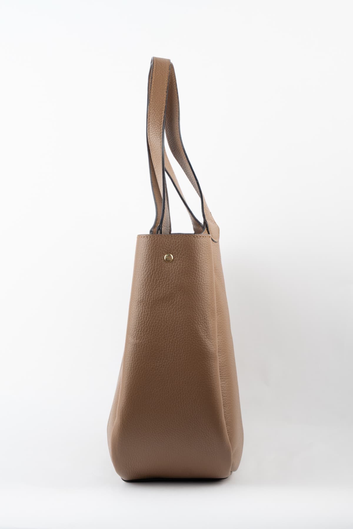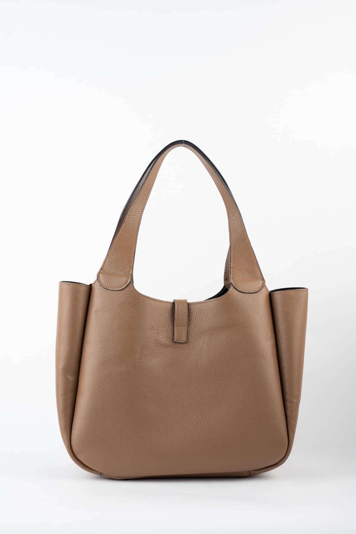 Type de sac : Sac cabas . Matière : Cuir grainé. Couleur : Taupe . Dimensions : 41 x 28 x 11 Accessoires : Couleur Dorée. Fermeture Principale : Crochet doré. Anses : Souples (porté main/épaule). Sangle Additionnelle : Amovible et Ajustable (pour porté bandoulière).Intérieur : Comporte une pochette intérieure zippée qui peut être accrochée à l’intérieur du sac ou porté en bandoulière