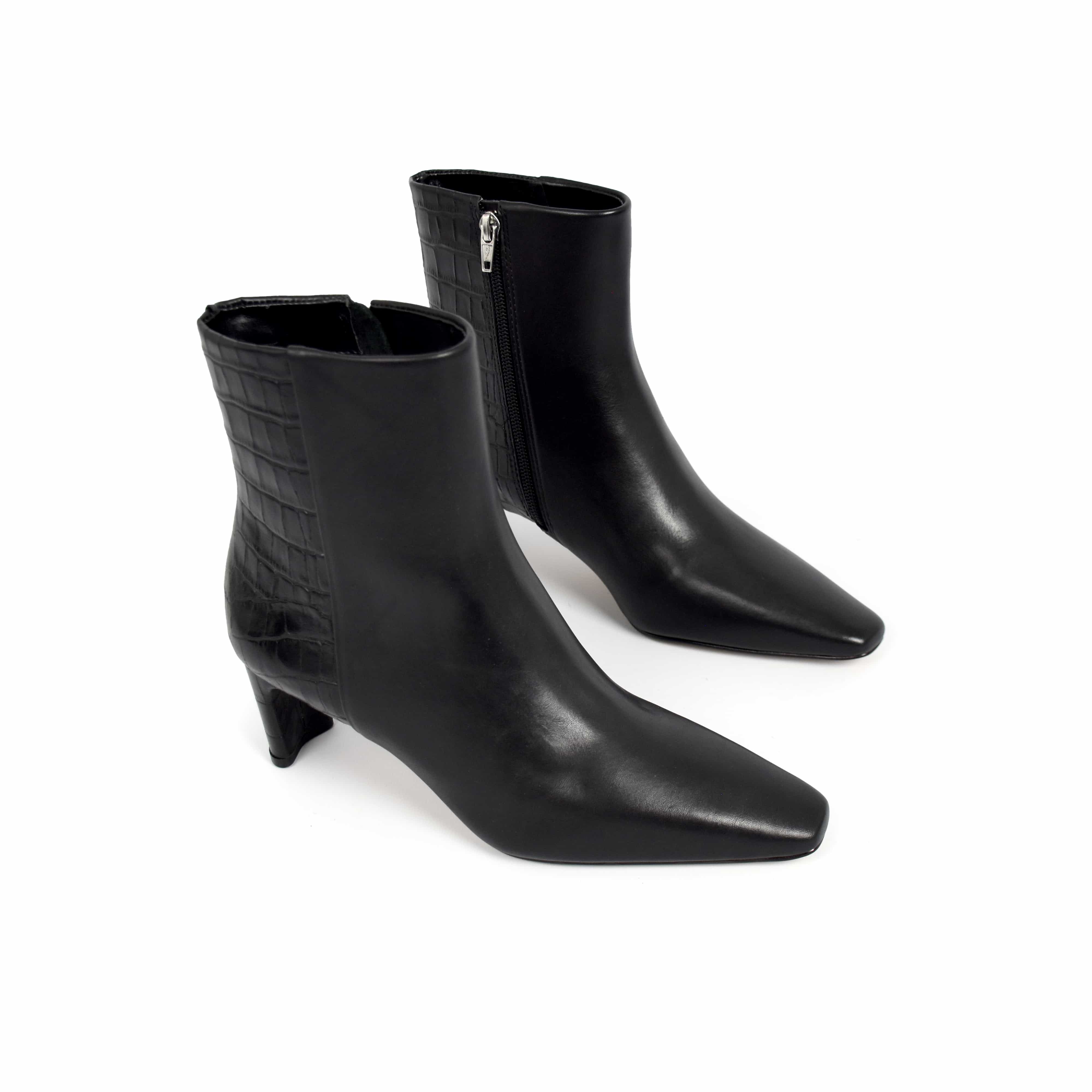 Boots, Matière Tige: Cuir De Vache, Matière Premiere: Synthetique, Matière Doublure: Synthetique, Semelle: Elastomere, Pays de Fabrication: Bresil, Type de Bout: Bout Pointu, Type de Fermeture: A Zip, Hauteur de talon: 5.