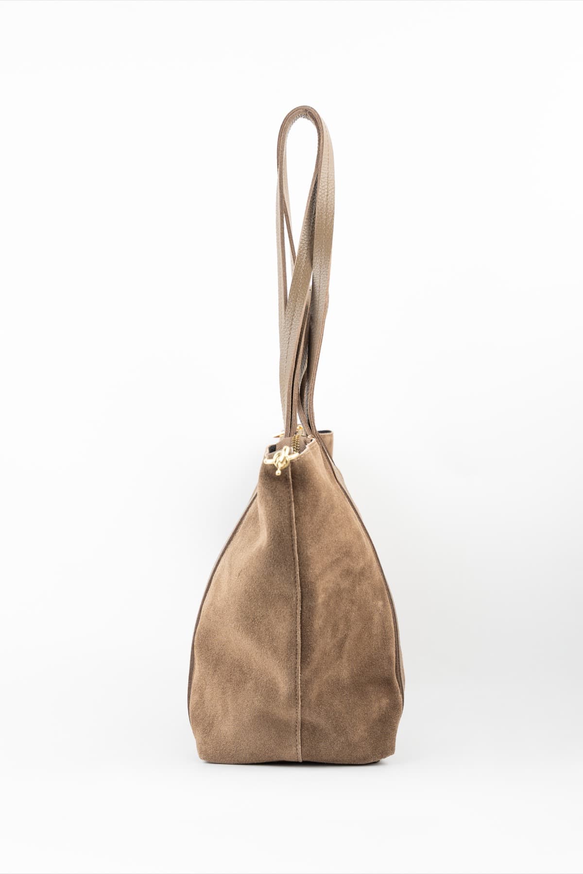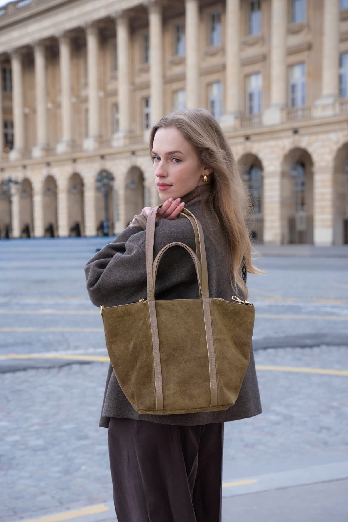 Découvrez cette pièce AURORA, un sac porté épaule ou main accessoire signature de la polyvalence raffinée. Vous aimerez le jeu des textures apporté par son duo de cuirs : cuir de vachette suède et cuir grainé. Sa fermeture zippée et couleur doré assurant une esthétique intemporelle. Ses doubles anses et sa pochette intérieure zippée garantissent une praticité optimale. Dimensions : L 24 cm x H 27 cm x P 14 cm.