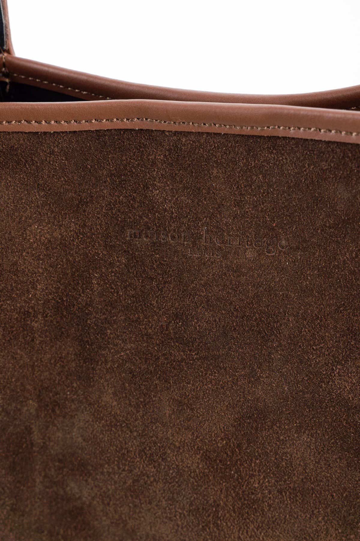 Matière : Duo de cuirs : Vachette suède principalement et Vachette grainée.