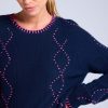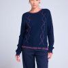 -Torsades et surpiqures noires aux torsades et bords côtes.