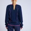 Un jeu de torsades, relevé pas des coutures en contraste noir sur blanc, se dévoile sur ce pull confectionné en cachemire épais. Il est muni d’un col rond, de manches longues et de bords côtelés. Incarnant l’élégance intemporelle, il vient réchauffer votre allure d’un chic tout en douceur. Pièce incontournable de la saison, associez-le à un pantalon droit, une jupe ou un jean.