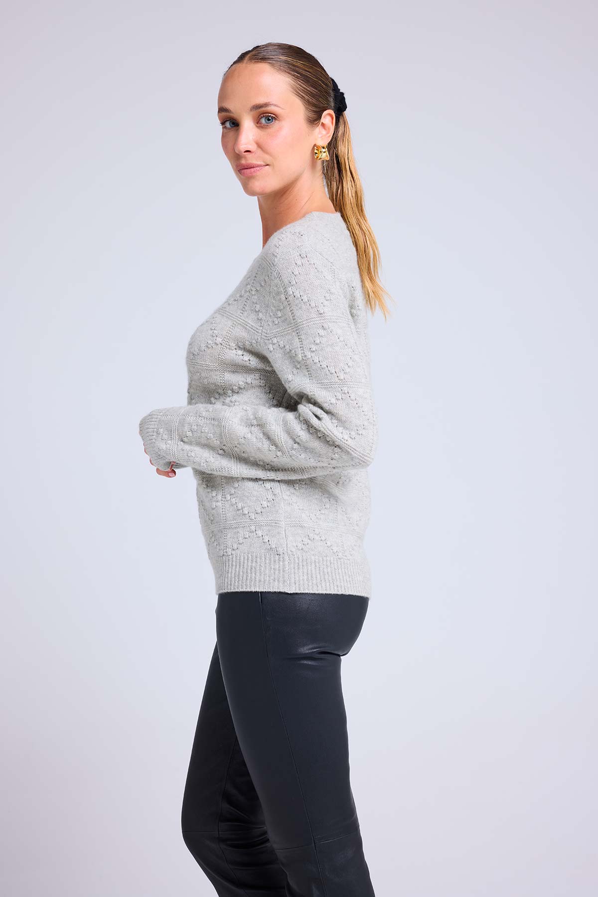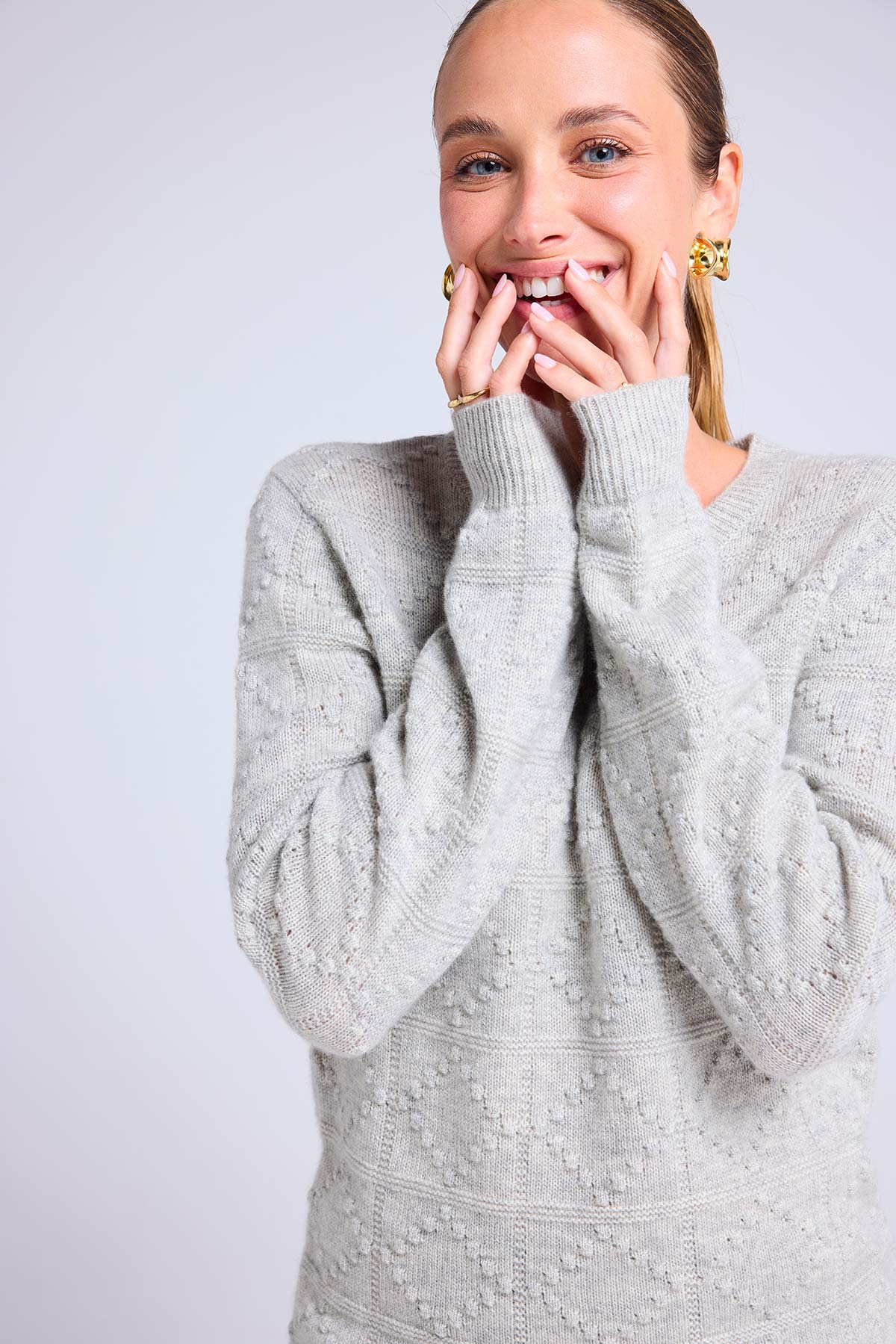 BLAIR – Pull col rond en cachemire à texture boules