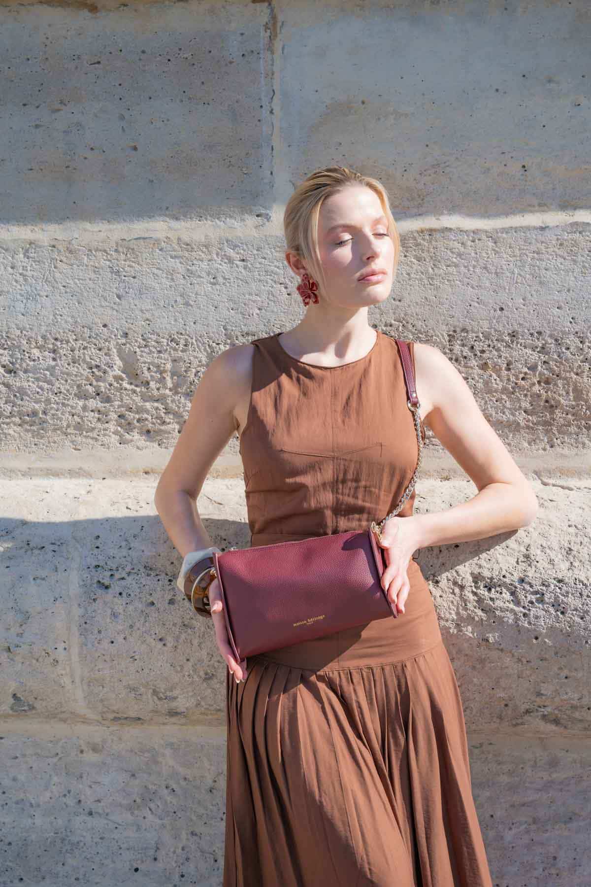 Découvrez le sac BRILLE, une création qui se distingue par un design épuré et une silhouette rectangulaire aux lignes affirmées. Son esthétique moderne, soulignée par un cuir au grain délicat et des finitions soignées, apporte une sophistication immédiate à votre style. Ce modèle au caractère intemporel est l’accessoire idéal pour celles qui recherchent une élégance sans effort, capable de s’adapter avec fluidité à chaque moment de votre quotidien.
