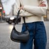 Sac à épaule en cuir avec poche intérieure zippée, poche frontale, fermeture principale à glissière et bandoulière amovible.