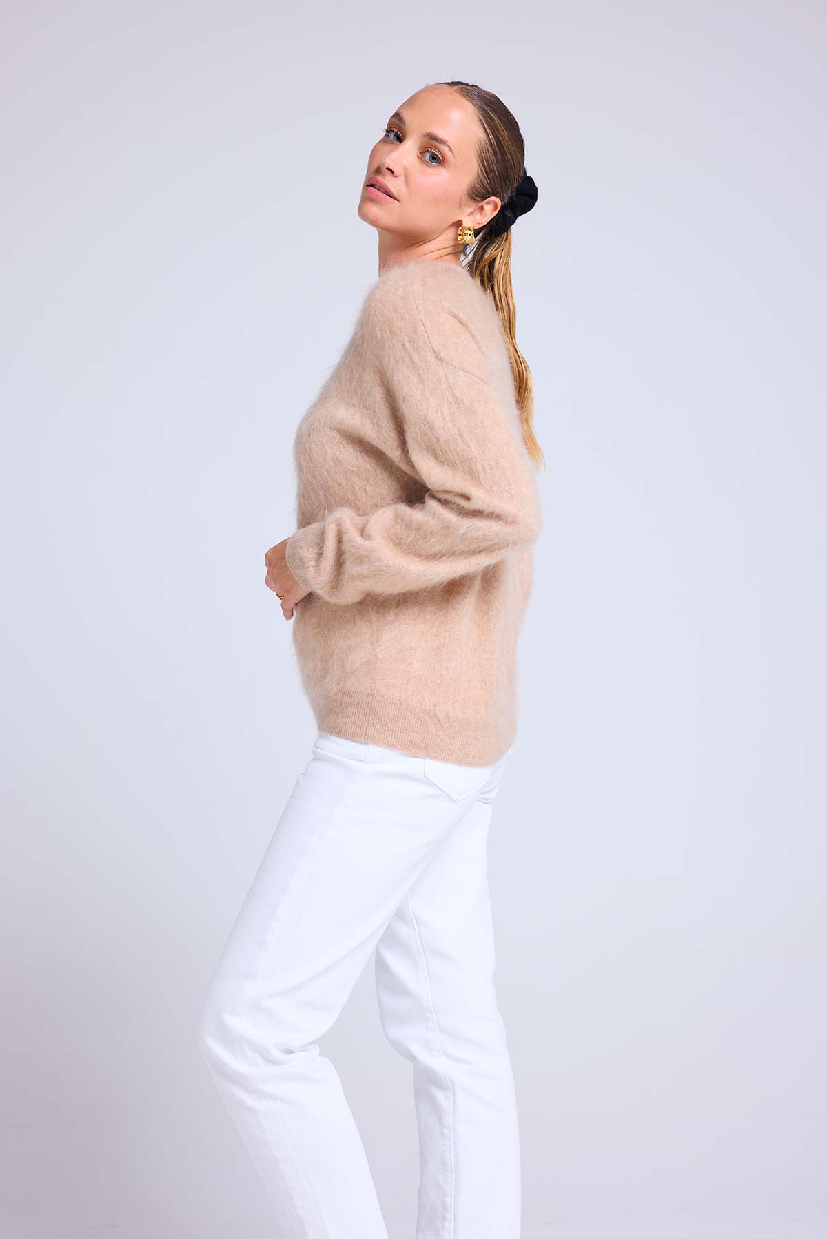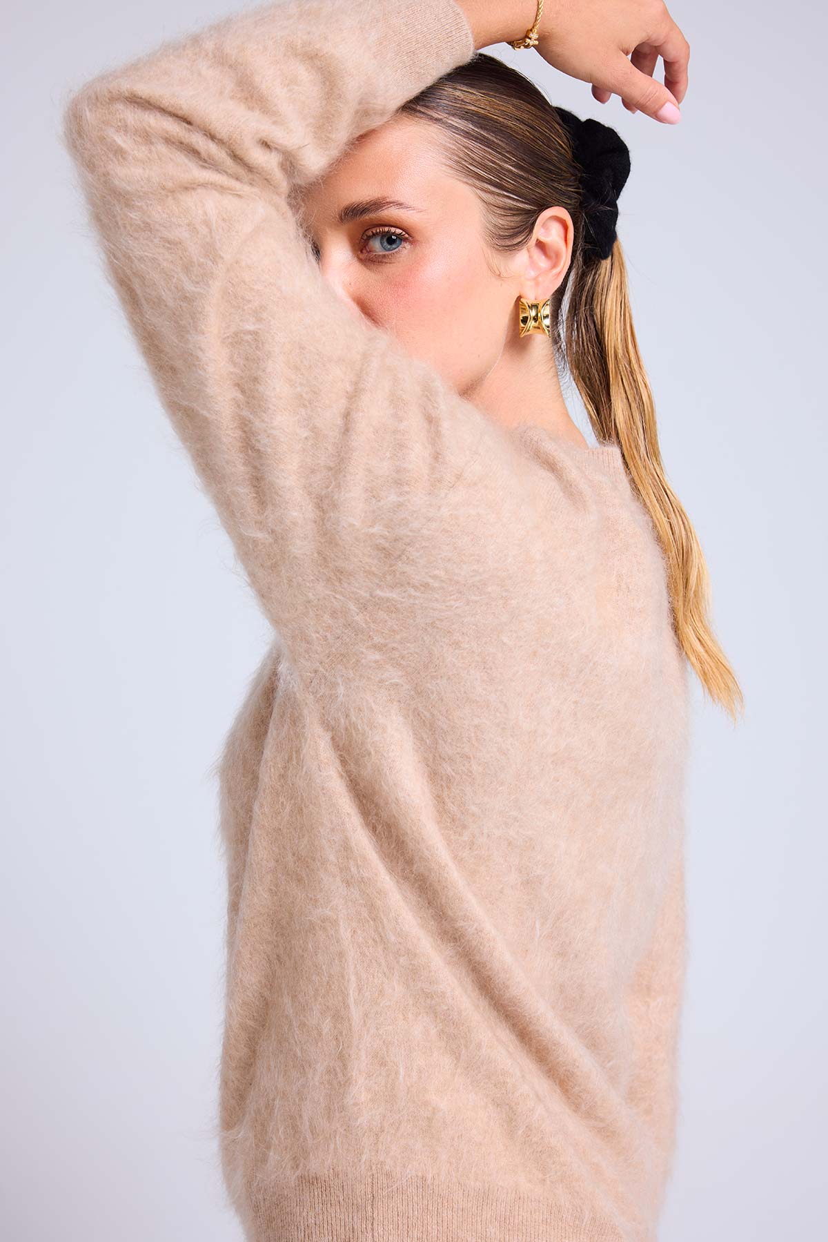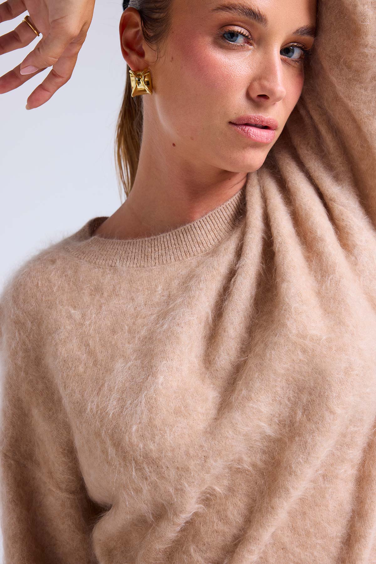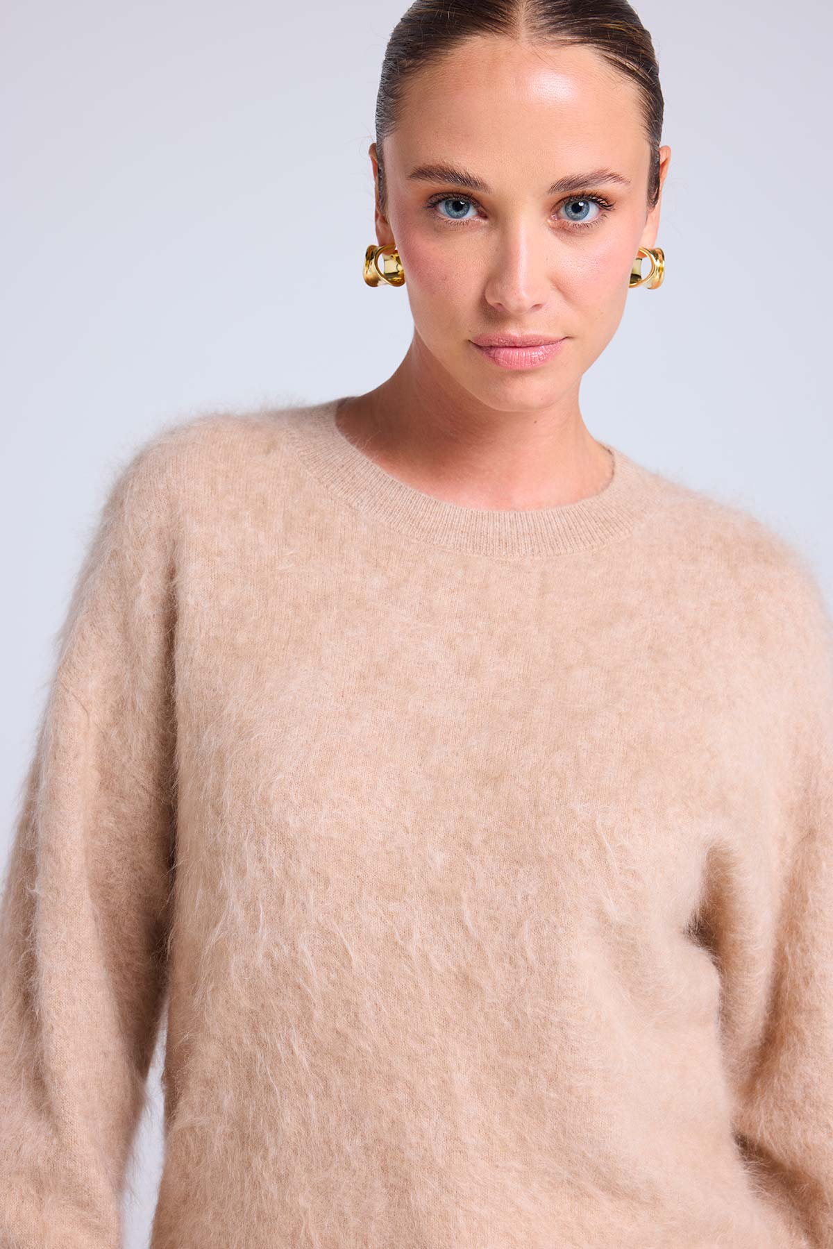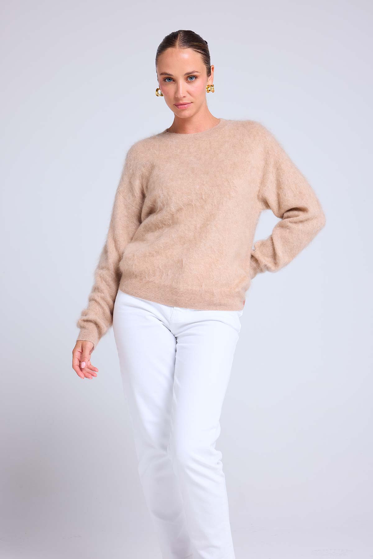 BRUNA – Pull col rond en cachemire brossé