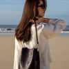 Sac seau à bandoulière. Ouverture avec bouton aimanté. Intérieur composé de 2 poches donc 1 zippée.