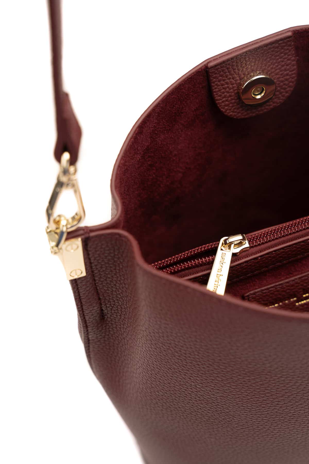 – Fermeture principale aimantée avec clip doré