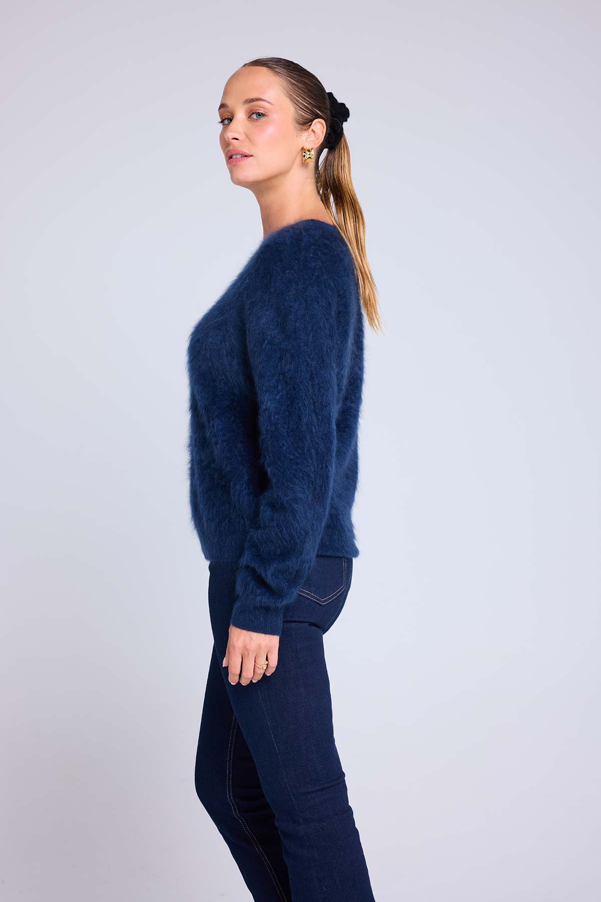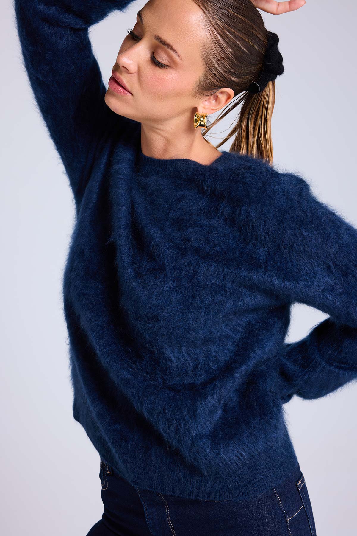 Le pull BRUNA séduit par son confort enveloppant et sa texture luxueuse. Réalisé en cachemire brossé, il présente un fini duveteux qui apporte douceur et chaleur tout en restant léger. Sa coupe ample et son col rond classique en font une pièce versatile, idéale aussi bien pour un look décontracté que raffiné.