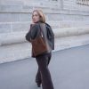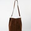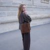 - Sac sceau en cuir suède : porté main ou épaule.