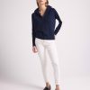 Illuminez votre vestiaire de saison avec ce pull 100% cachemire, muni d’un col camionneur zippé et montant, de manches longues et de bord côtelés. Il réchauffera votre silhouette avec des bandes en empiècements de points de mailles travaillés. Un jeu de contraste audacieux pour réchauffer vos looks de la saison. Autorisant tous les styles, il se portera autant sur un jean, une jupe, que sur un pantalon.