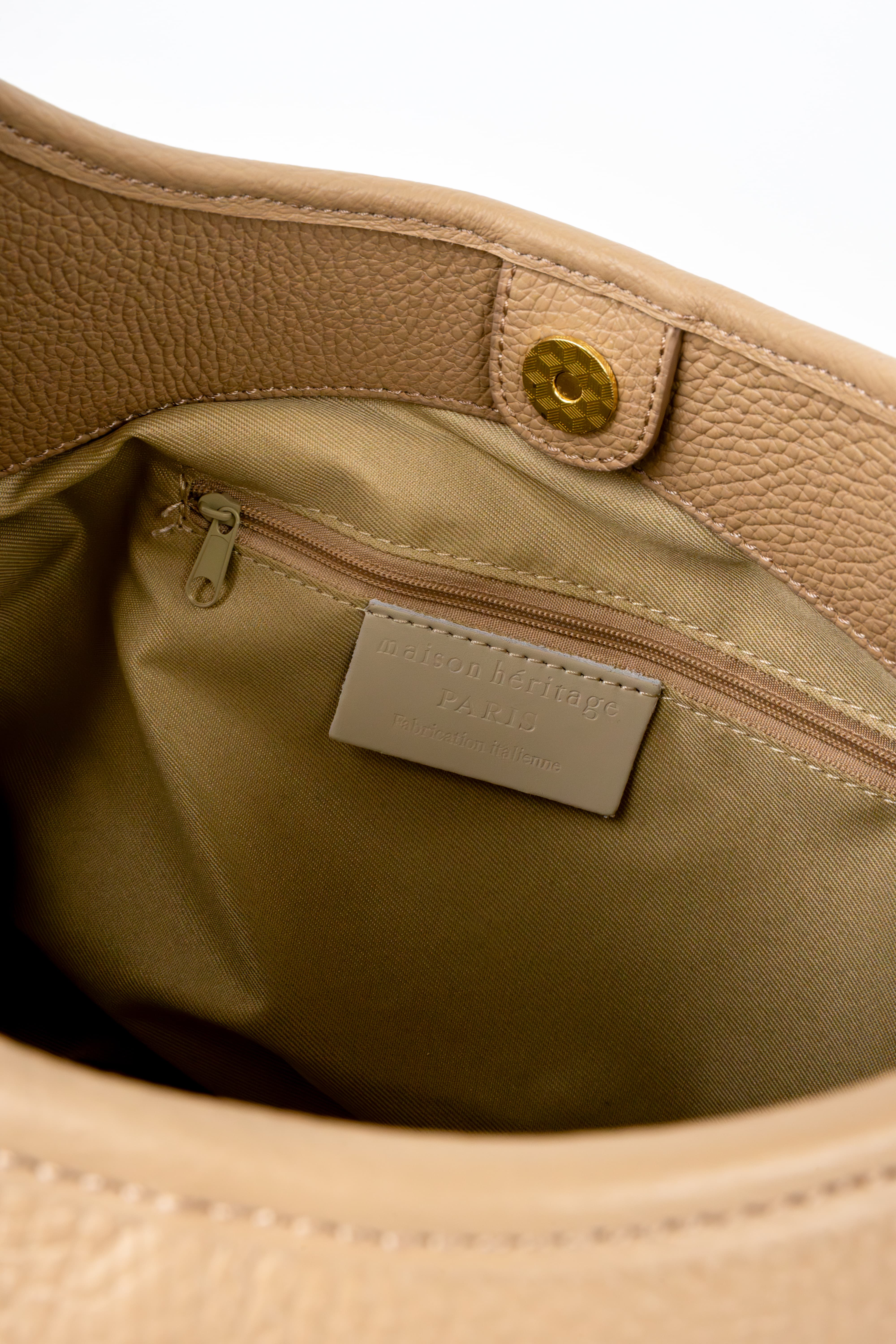 Découvrez le Sac Porté Épaule CEDRO : un modèle souple en cuir grainé, pensé pour allier confort, espace et élégance.