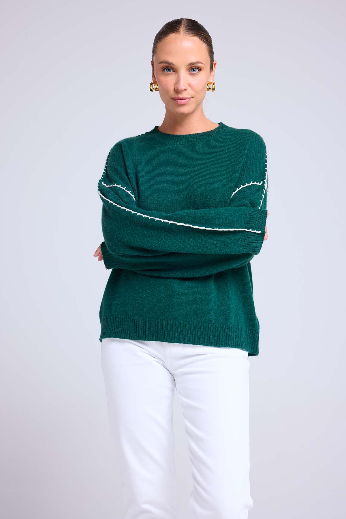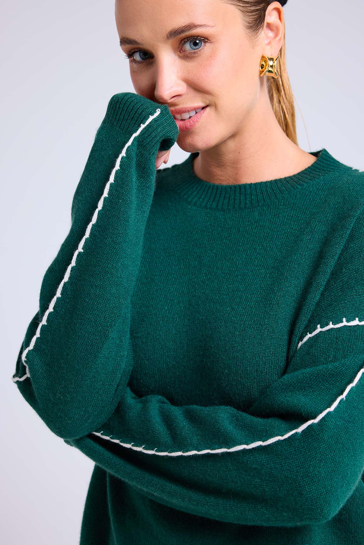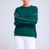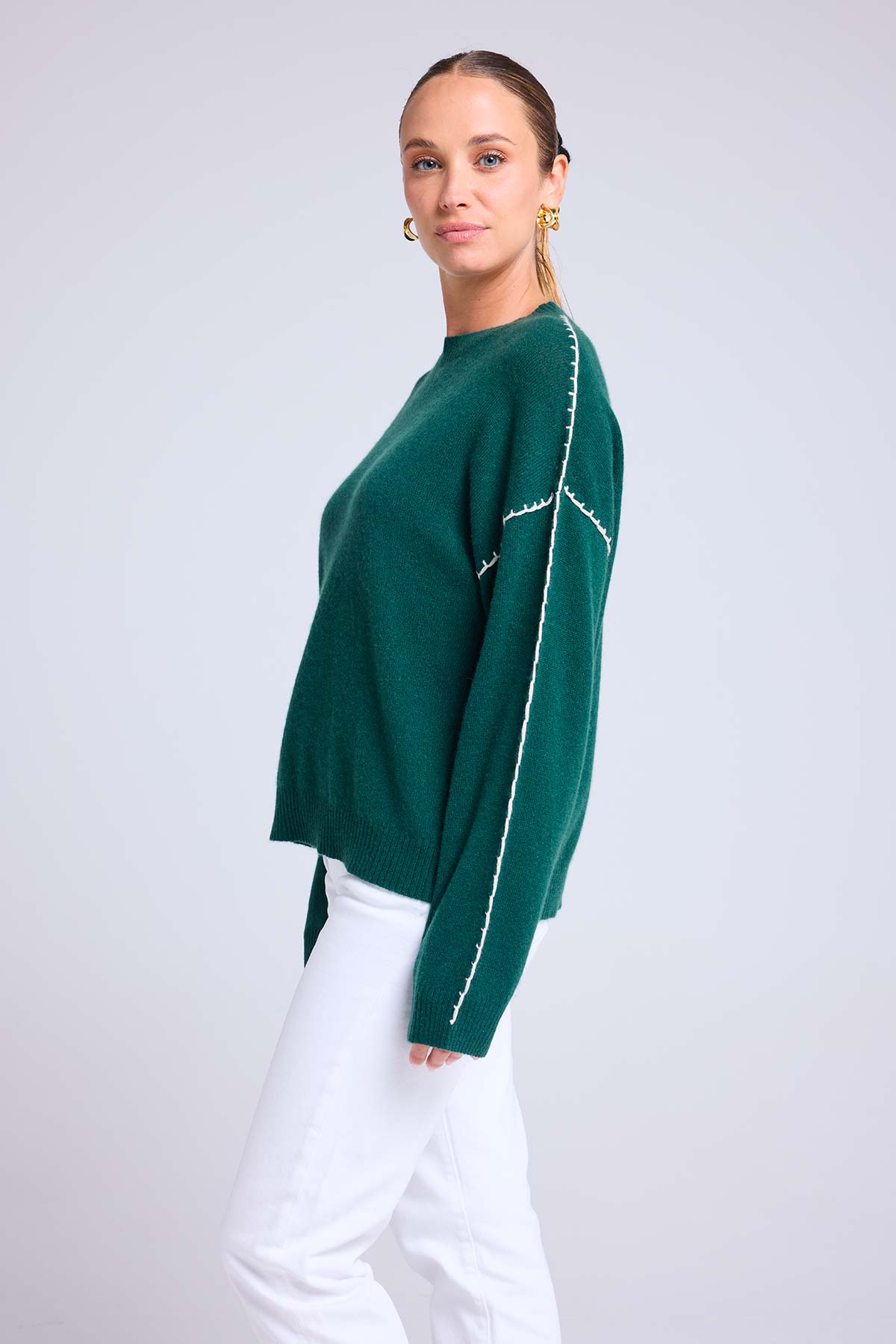 Réhaussez vos tenues avec élégance et raffinement avec ce pull confectionné en 100% cachemire. Muni d’un col rond, de manches longues et de surpiqures en contraste bimatières, il offre une coupe oversize pour une allure décontractée avec chic. À marier à toutes vos tenues, il donnera autant d’éclat à un jean, qu’à une jupe ou un pantalon fluide.