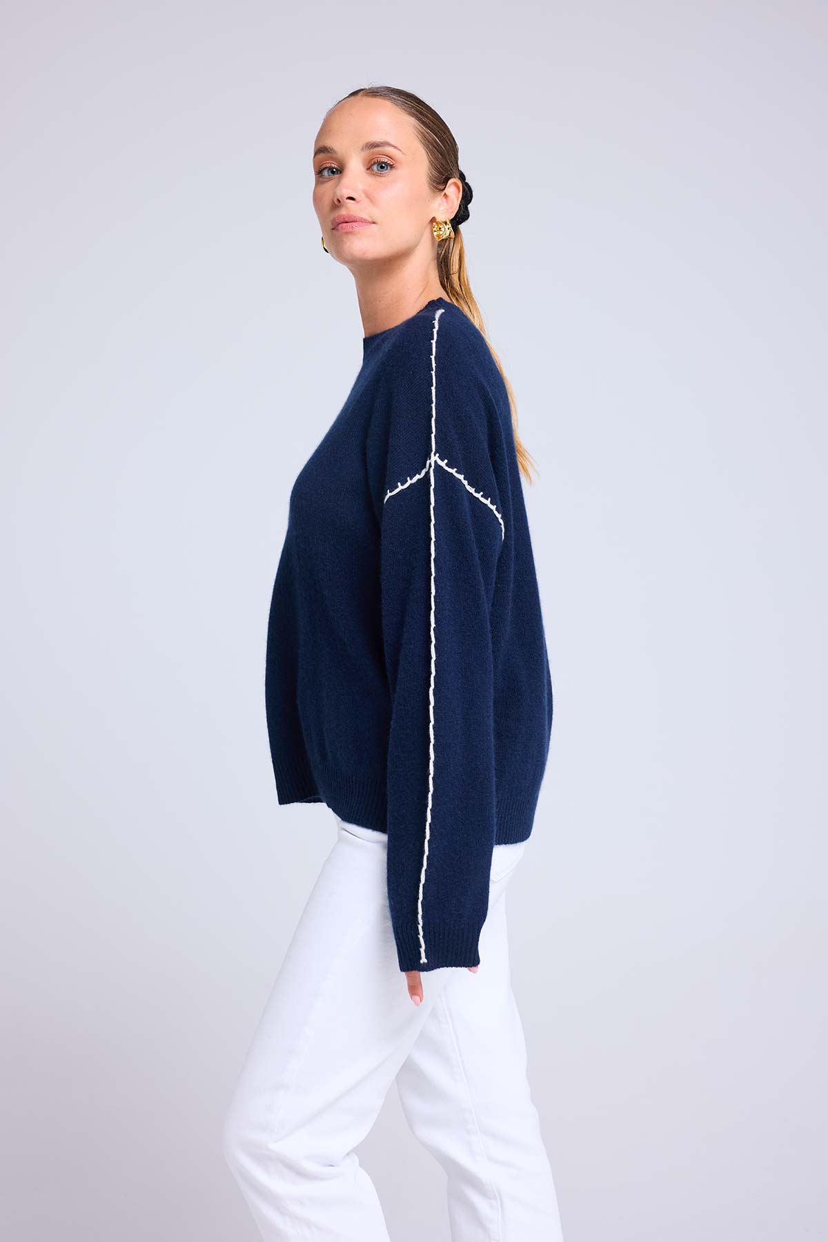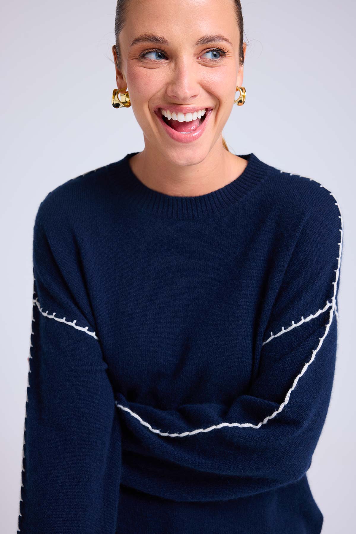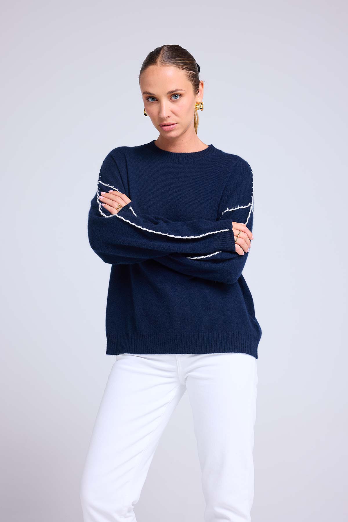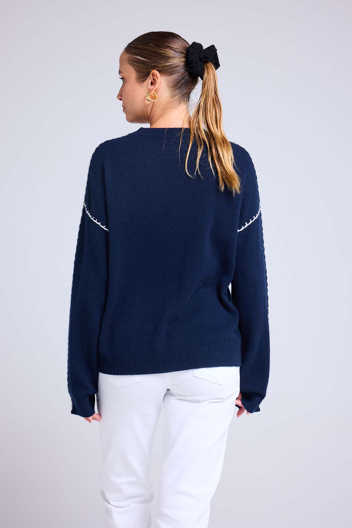 Réhaussez vos tenues avec élégance et raffinement avec ce pull confectionné en 100% cachemire. Muni d’un col rond, de manches longues et de surpiqures en contraste bimatières, il offre une coupe oversize pour une allure décontractée avec chic. À marier à toutes vos tenues, il donnera autant d’éclat à un jean, qu’à une jupe ou un pantalon fluide.