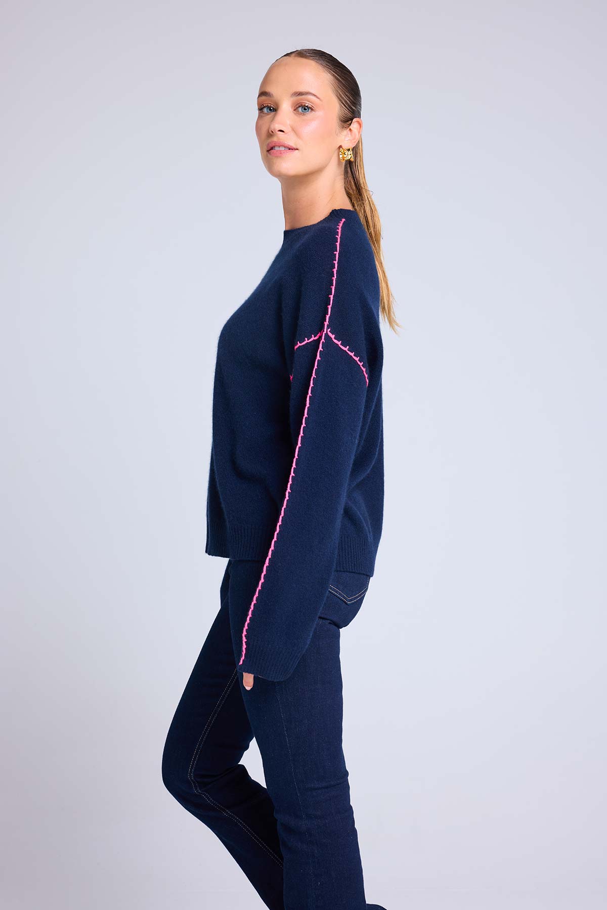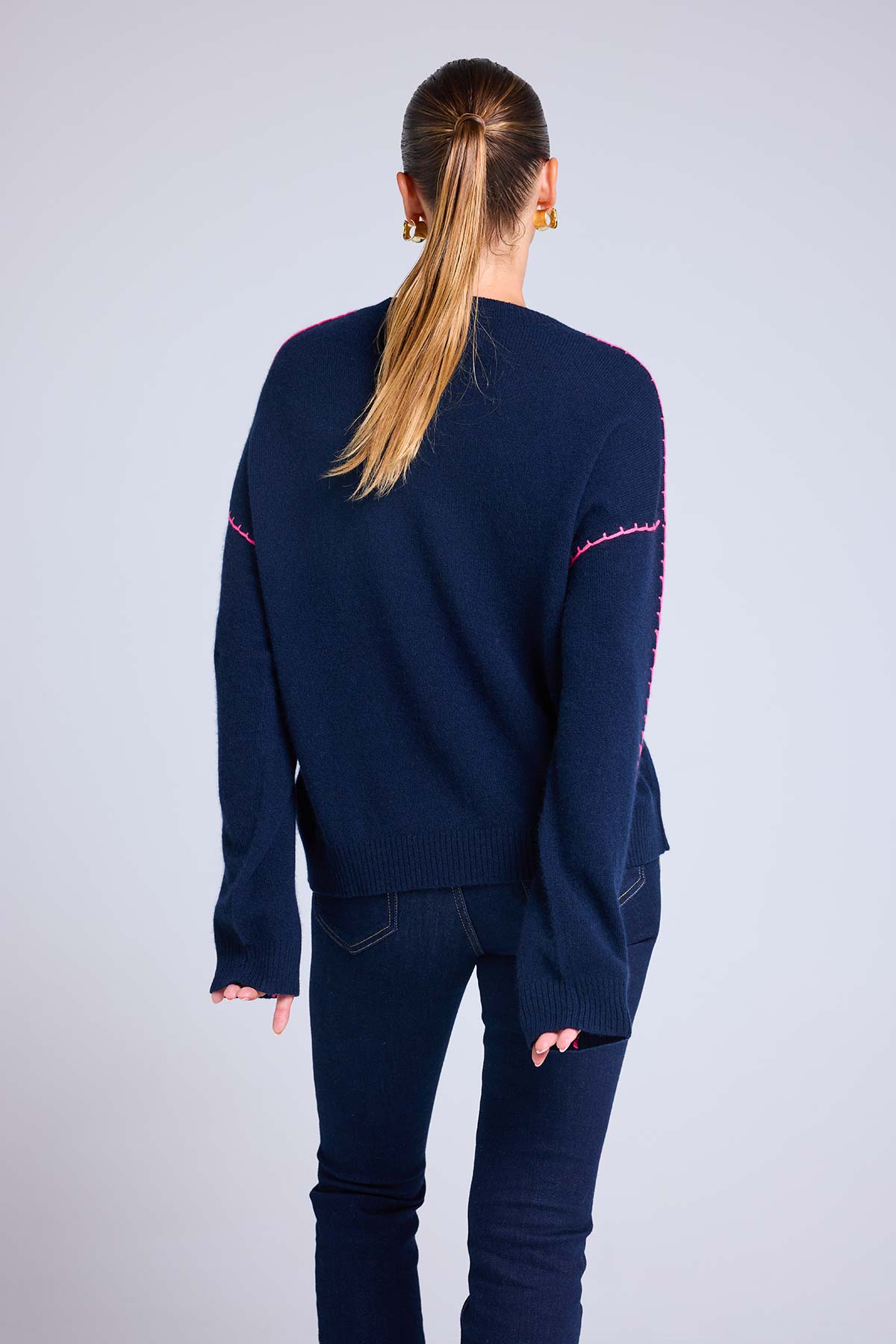 Réhaussez vos tenues avec élégance et raffinement avec ce pull confectionné en 100% cachemire. Muni d’un col rond, de manches longues et de surpiqures en contraste bimatières, il offre une coupe oversize pour une allure décontractée avec chic. À marier à toutes vos tenues, il donnera autant d’éclat à un jean, qu’à une jupe ou un pantalon fluide.