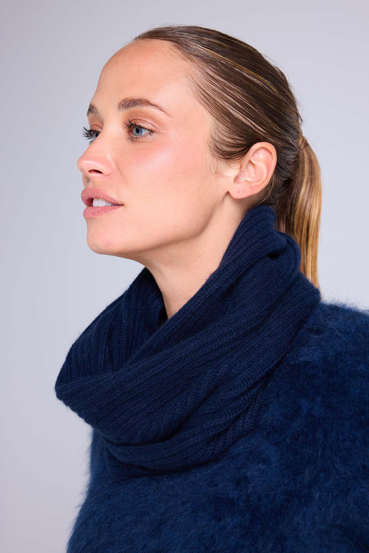 Pensé pour les journées les plus froides, COL est l’accessoire essentiel qui allie chaleur, douceur et sobriété. Sa forme montante protège efficacement le cou et la nuque, tandis que son tricotage en 4 fils jauge 7GG offre une texture dense et moelleuse. Léger et confortable, il se glisse facilement sous un manteau ou un pull sans jamais alourdir la silhouette.