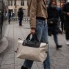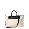 Sac de voyage en toile avec détails en cuir, poche intérieure avec fermeture, poche intérieure simple, poignée, poche frontale avec fermeture, bandoulière amovible et réglable.