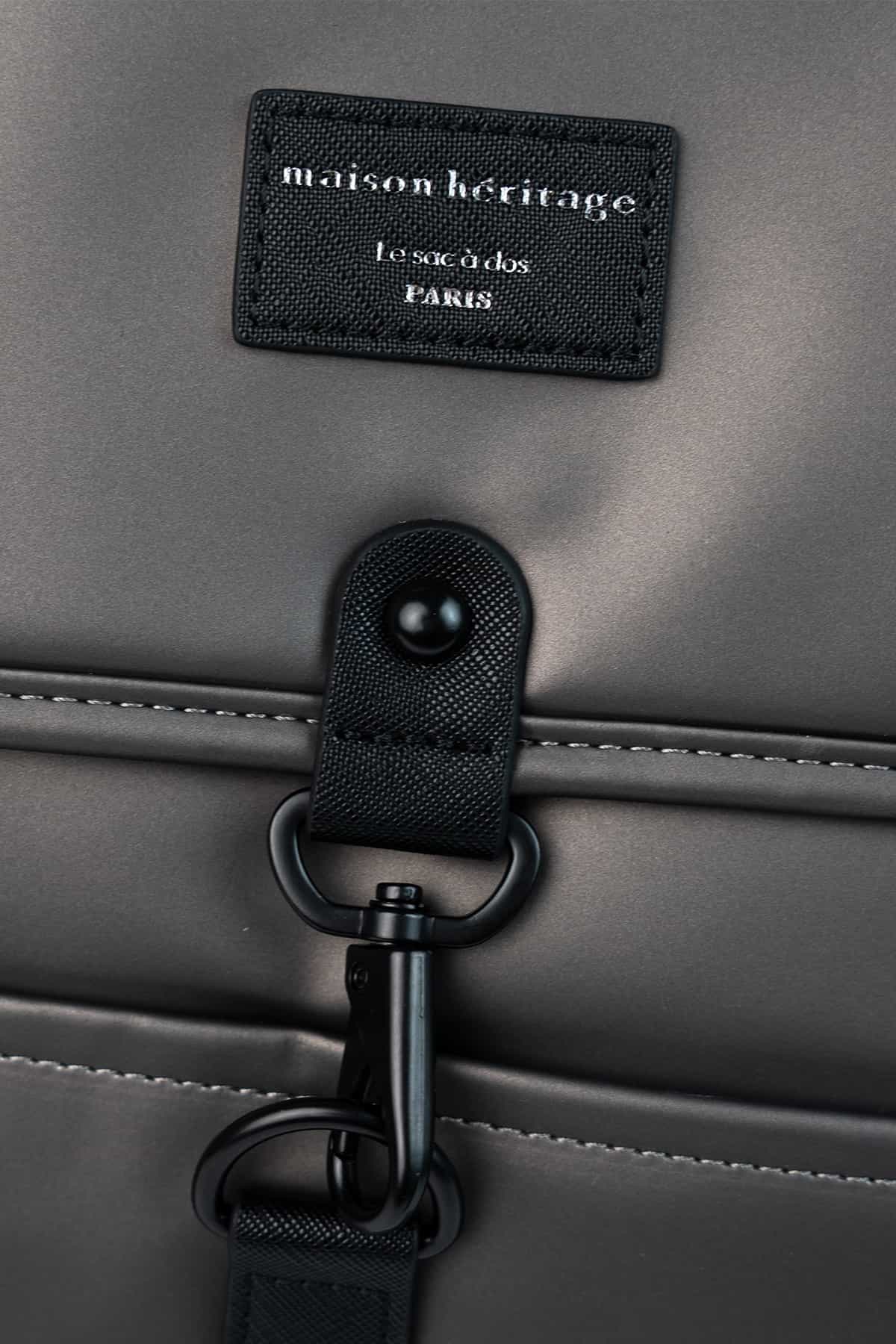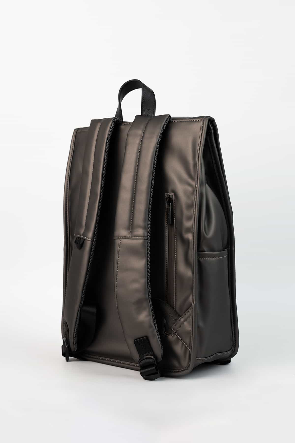 Découvrez le Sac à Dos en matière imperméable : un modèle technique au design structuré, parfait pour transporter vos essentiels high-tech avec style et sécurité.