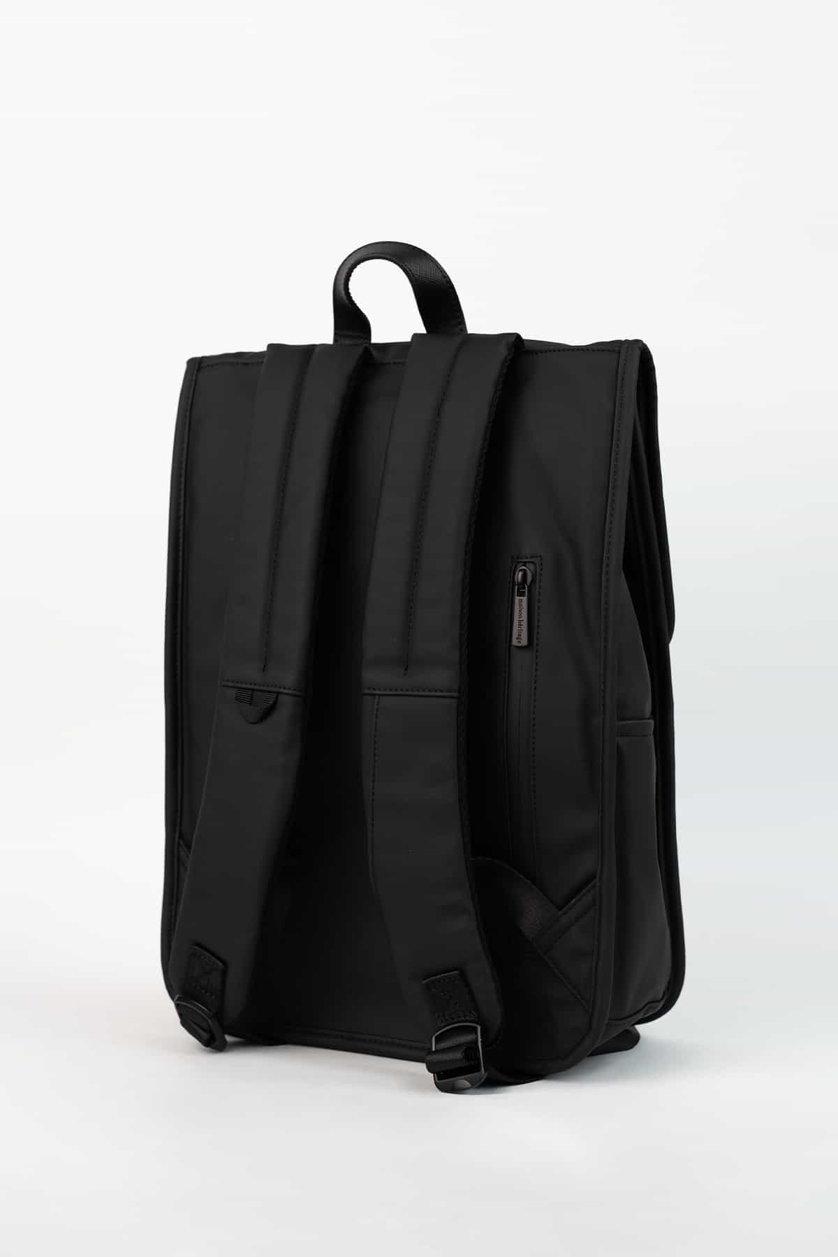 Découvrez le Sac à Dos en matière imperméable : un modèle technique au design structuré, parfait pour transporter vos essentiels high-tech avec style et sécurité.