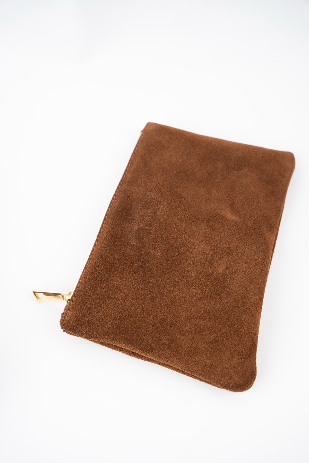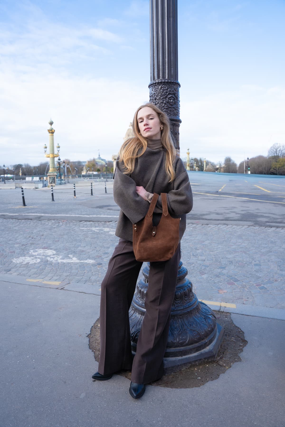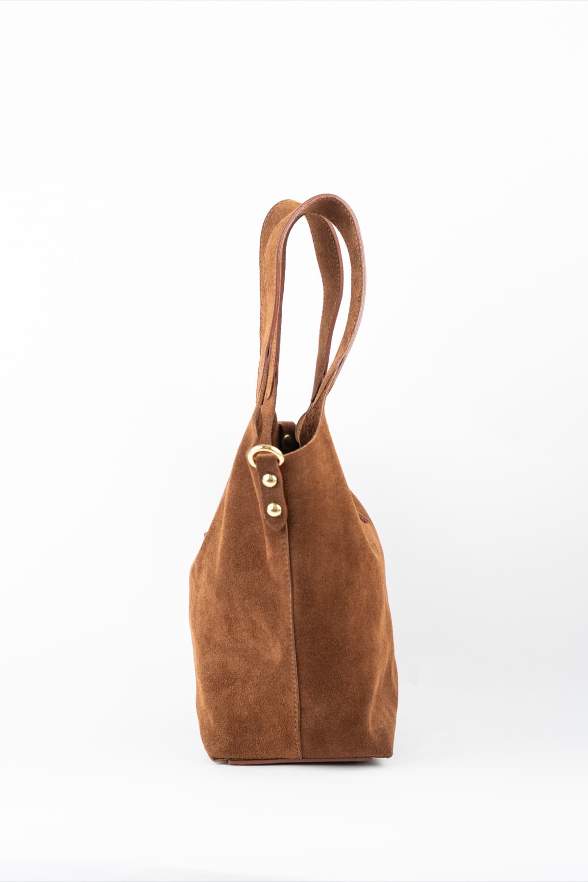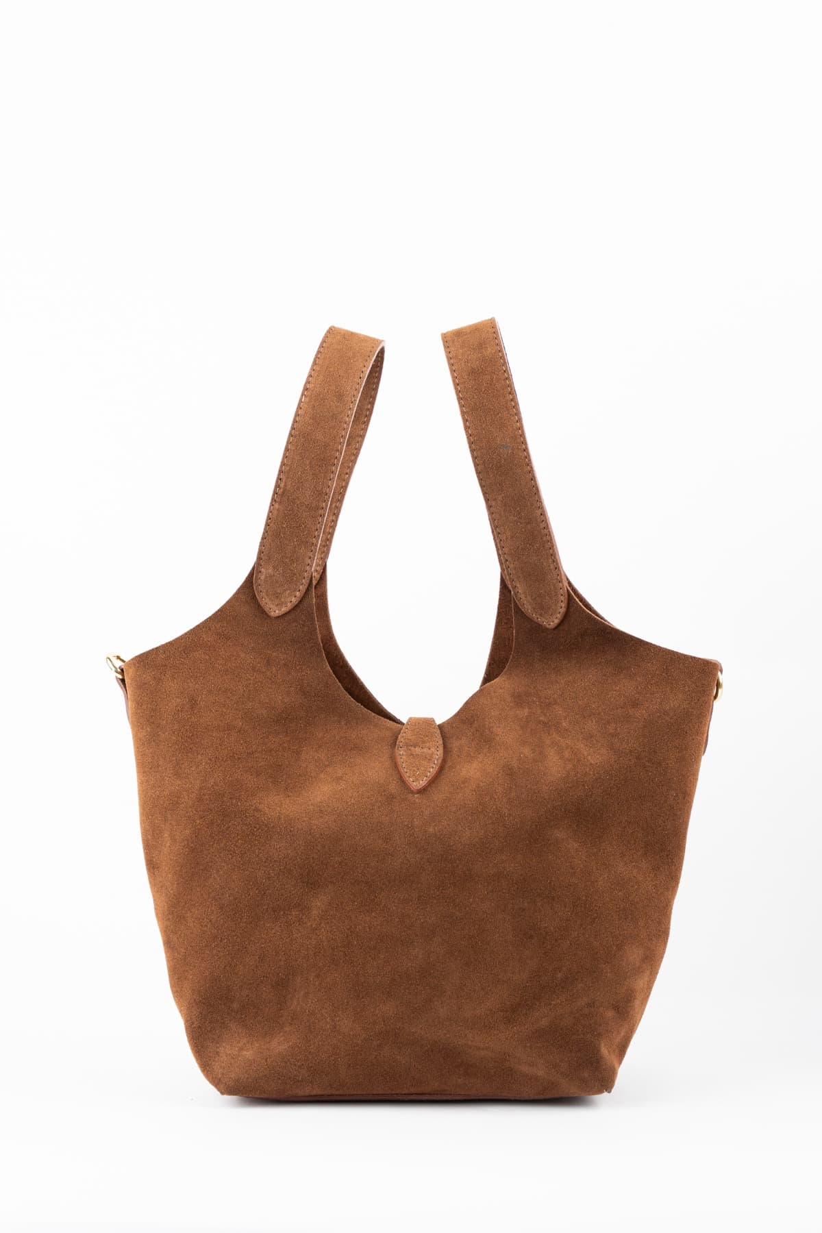 Type : sac à main / porté épaule – Matière : Cuir de vachette suède couleur marron