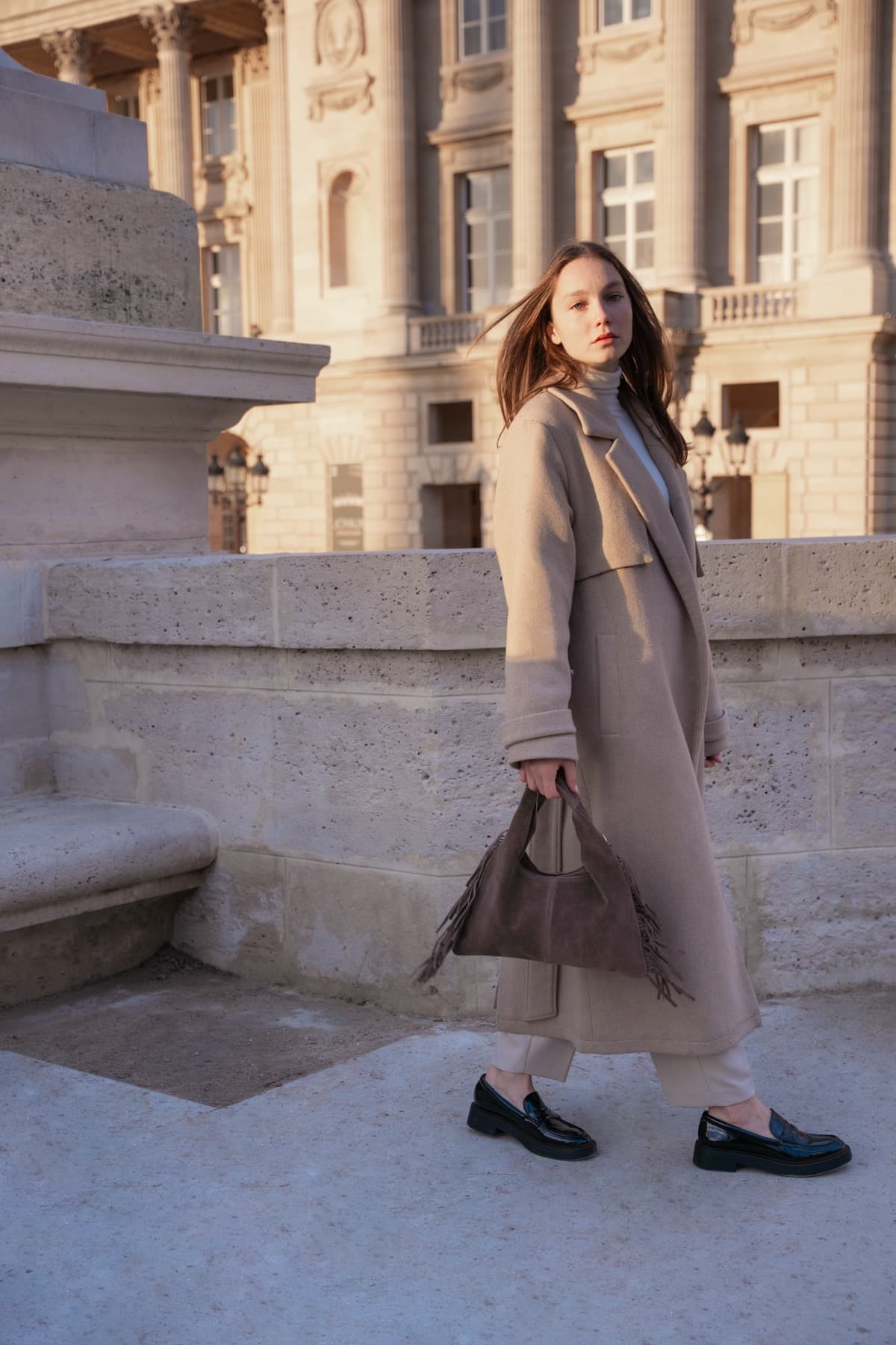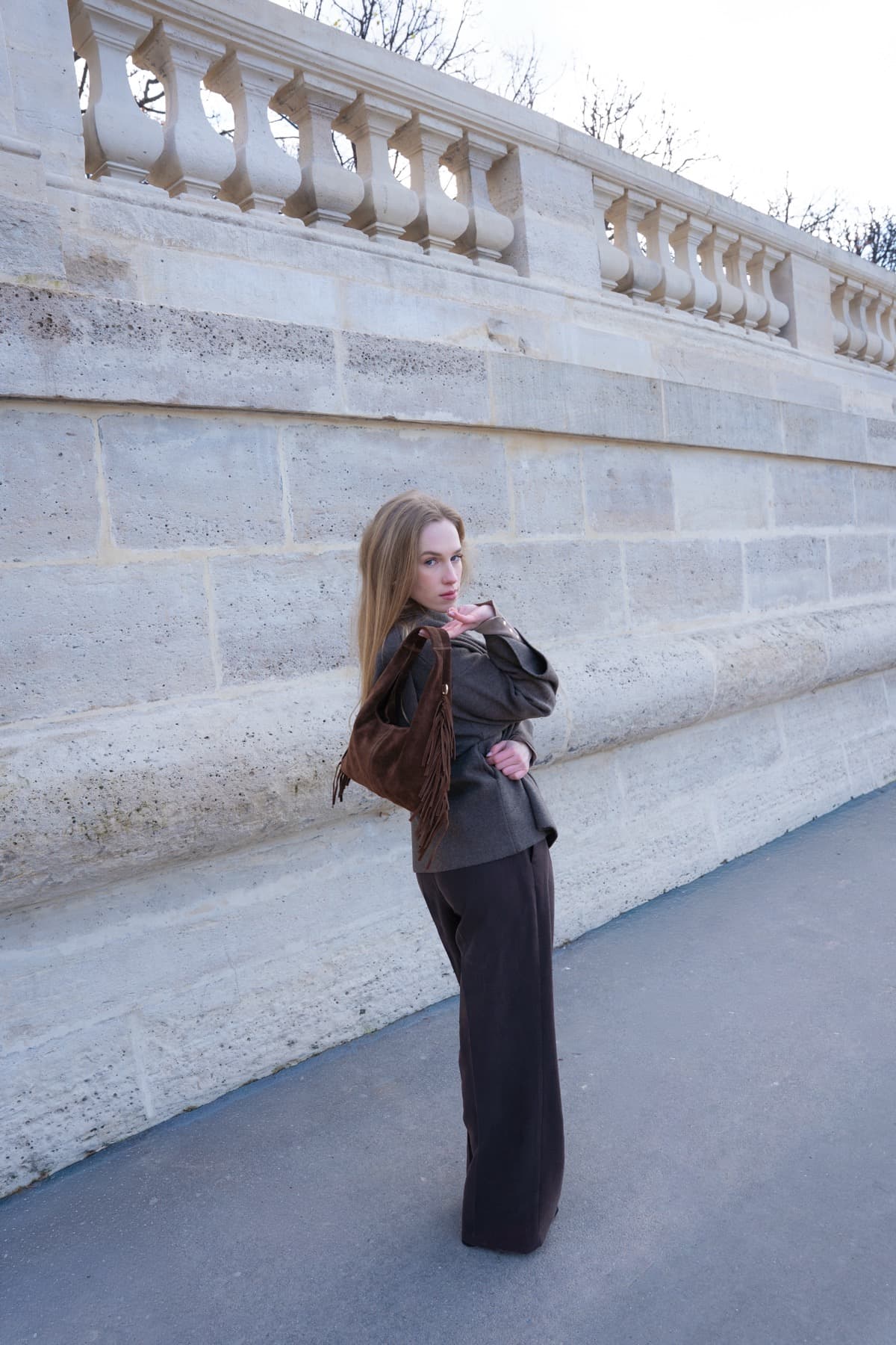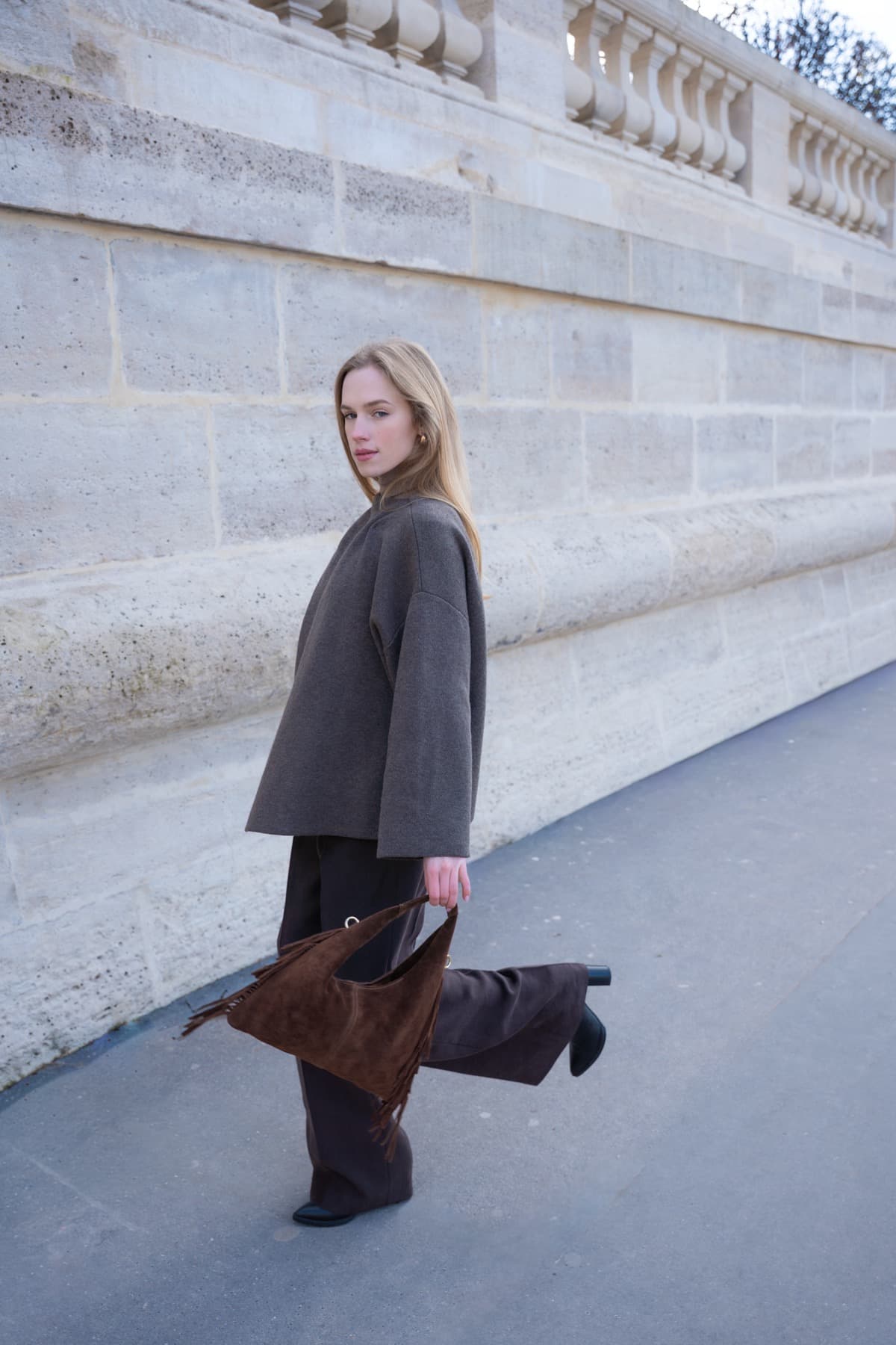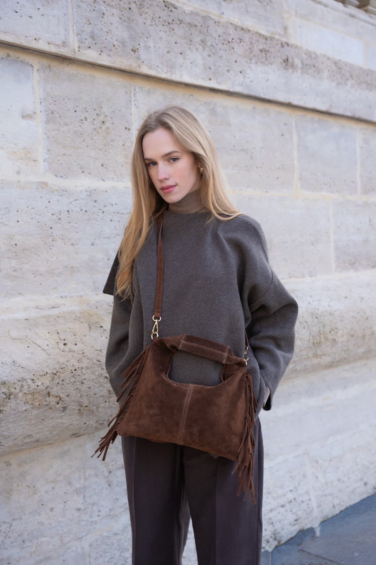 Matière : Cuir de vachette suède couleur taupe