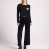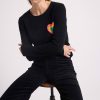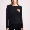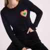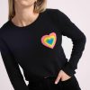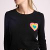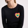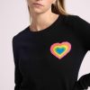 Mettant en valeur le savoir-faire de la Maison, le coeur arc en ciel est tricoté en jacquard comme une broderie avec des fils de couleurs audacieuses qui contrastent avec le fond uni.