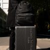 Extérieur : 2 poches latérales pour bouteilles, 1 poche frontale basse zippée, 1 poche ordinateur zippée, 1 poche arrière avec attache valise