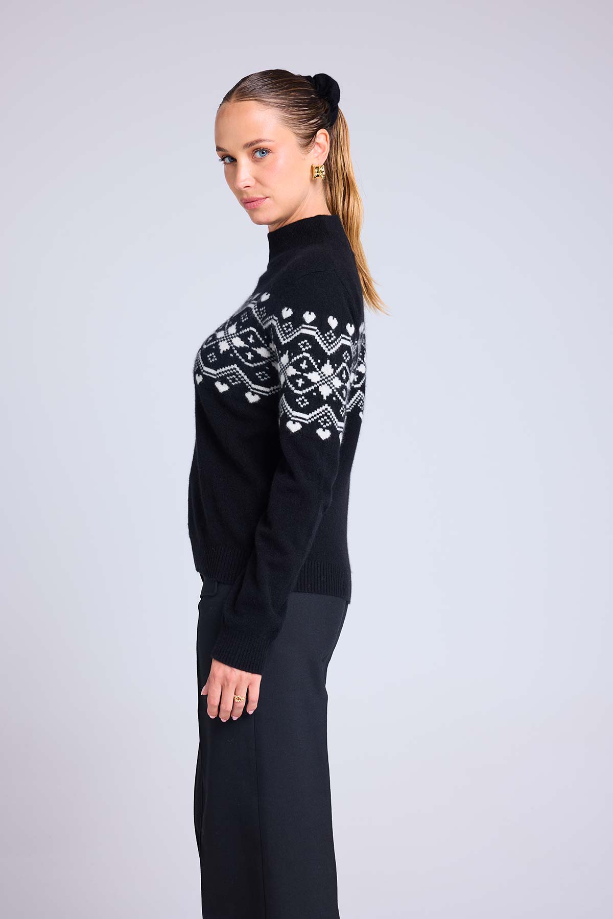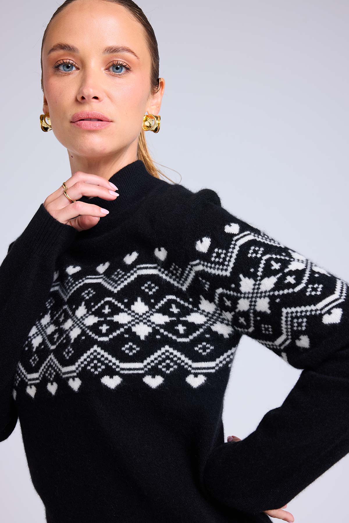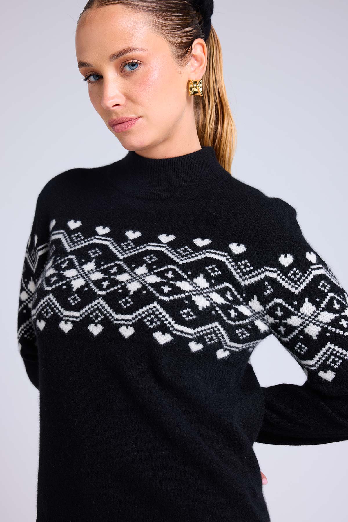 Le pull FABIA séduit par son esprit hivernal chic et ses détails graphiques soignés.