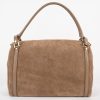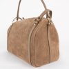 - Matière : Duo de cuirs, Vachette suède (principalement, couleur taupe) et Vachette grainée (deux bandes décoratives).