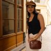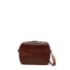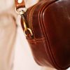 Sac bandoulière en cuir avec une poche intérieure amovible, fermeture à glissière et bandoulière amovible, ajustable en cuir.