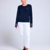 Le pull GAIA séduit par son style à la fois épuré et plein de charme. Confectionné en cachemire d’exception, il offre une douceur incomparable et un confort absolu. La broderie « love » délicatement placée sur la poitrine et les vagues contrastées au bas des manches apportent une touche graphique et féminine à cette pièce intemporelle.