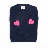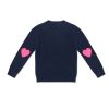 Notre pull Giulia, notre best seller, comme chez maman et papa, dévoile une maille chaude et moelleuse, idéale pour les minis. Muni d’un col rond et de manches longues, ce pull en 100% cachemire infiniment doux affiche deux cœurs rose fluo sur les coudes.