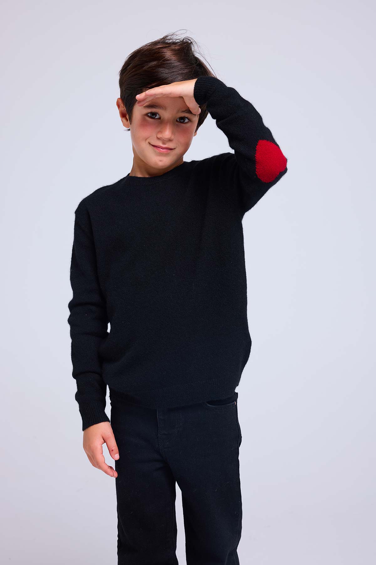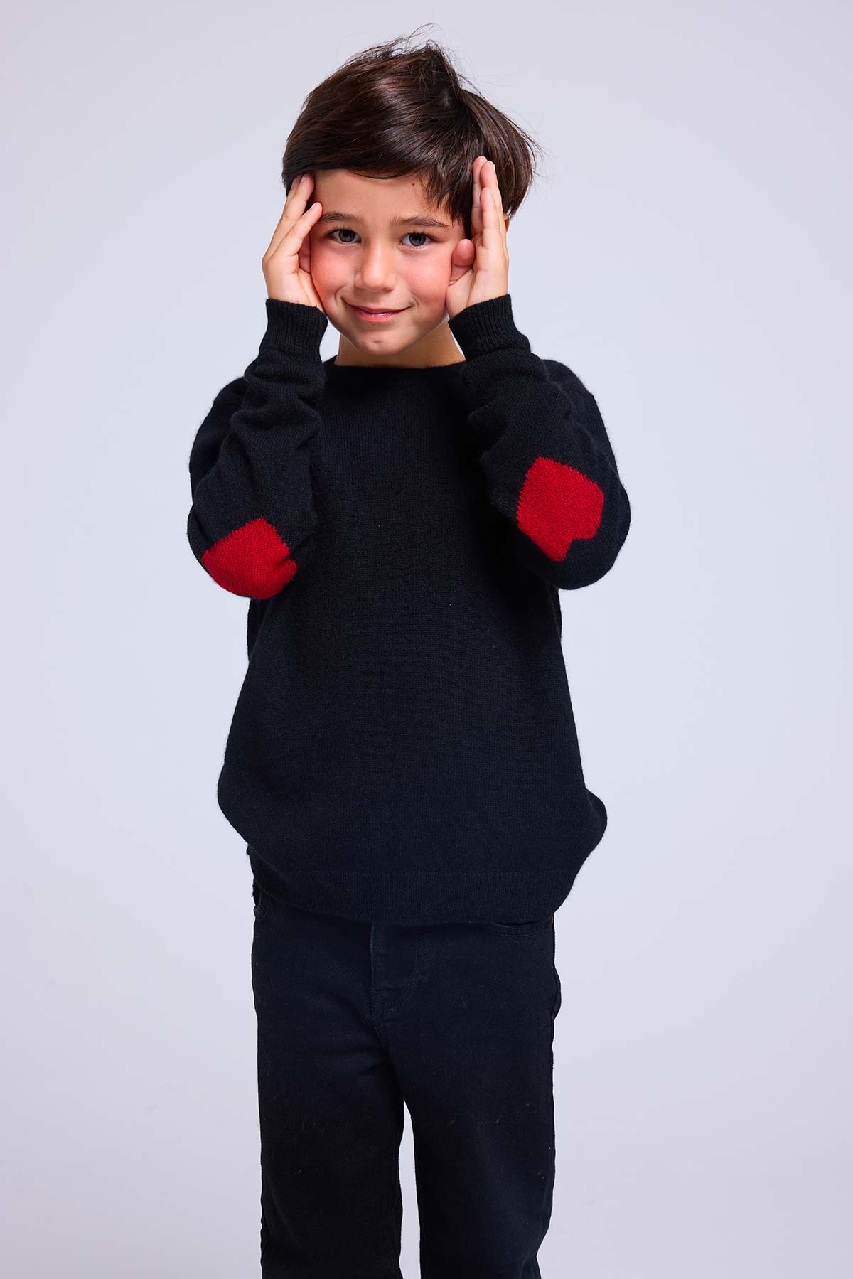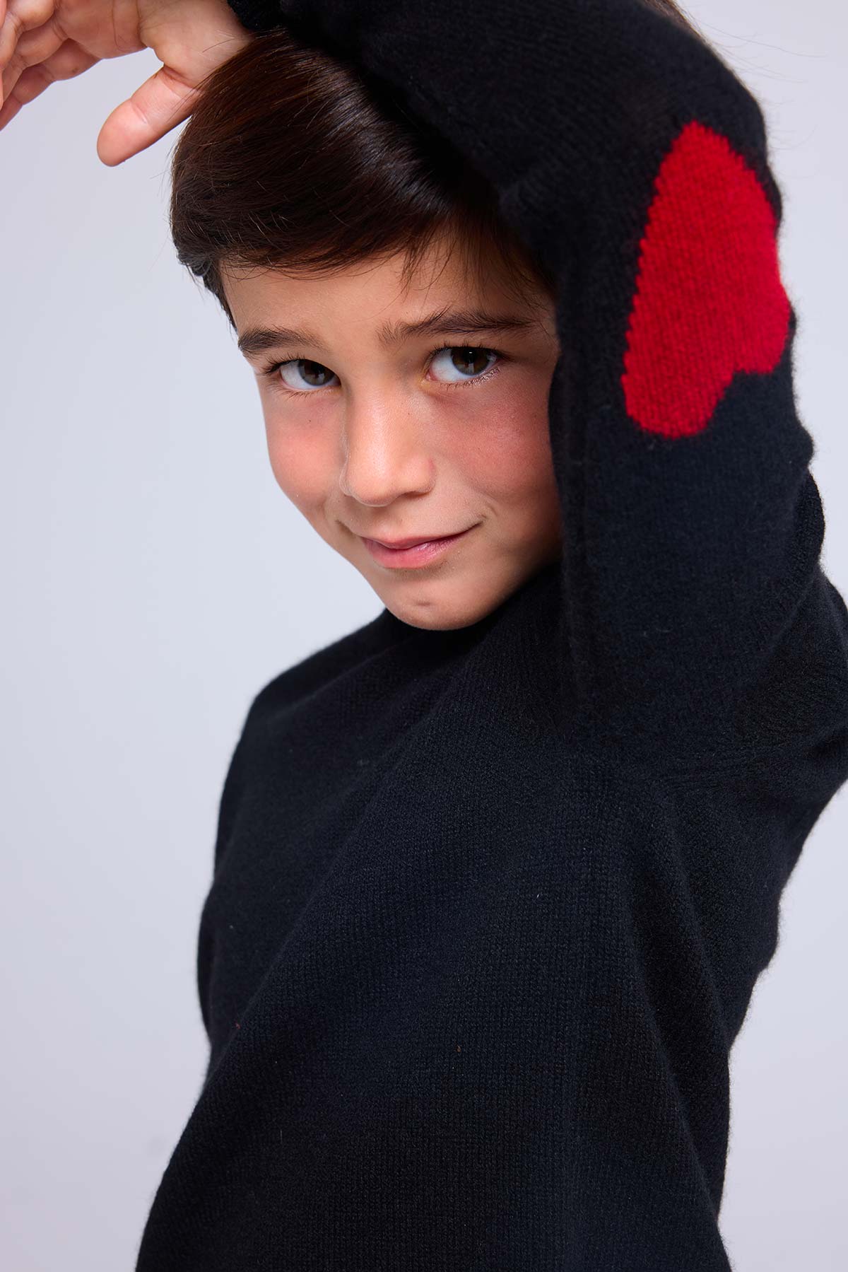 Notre pull Giulia, notre best seller, comme chez maman et papa, dévoile une maille chaude et moelleuse, idéale pour les minis. Muni d’un col rond et de manches longues, ce pull en 100% cachemire infiniment doux affiche deux cœurs rose fluo sur les coudes.