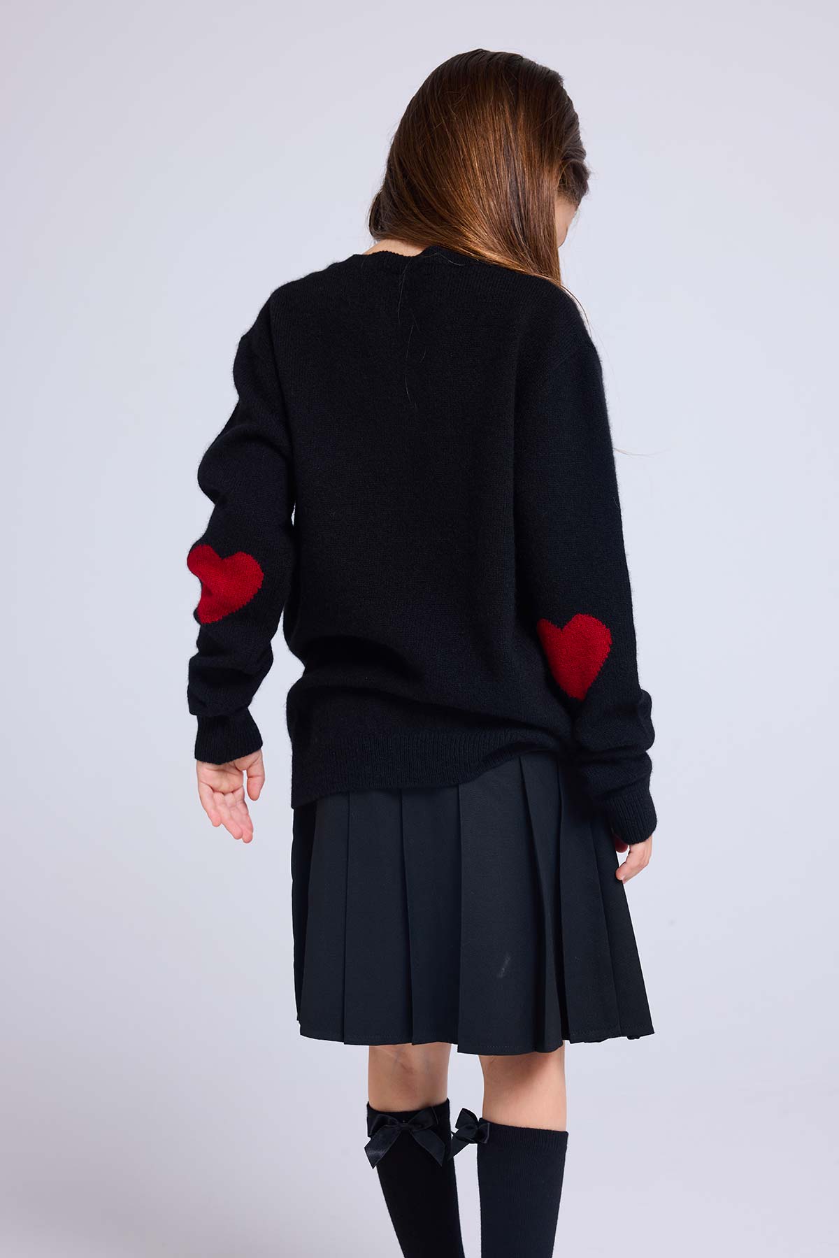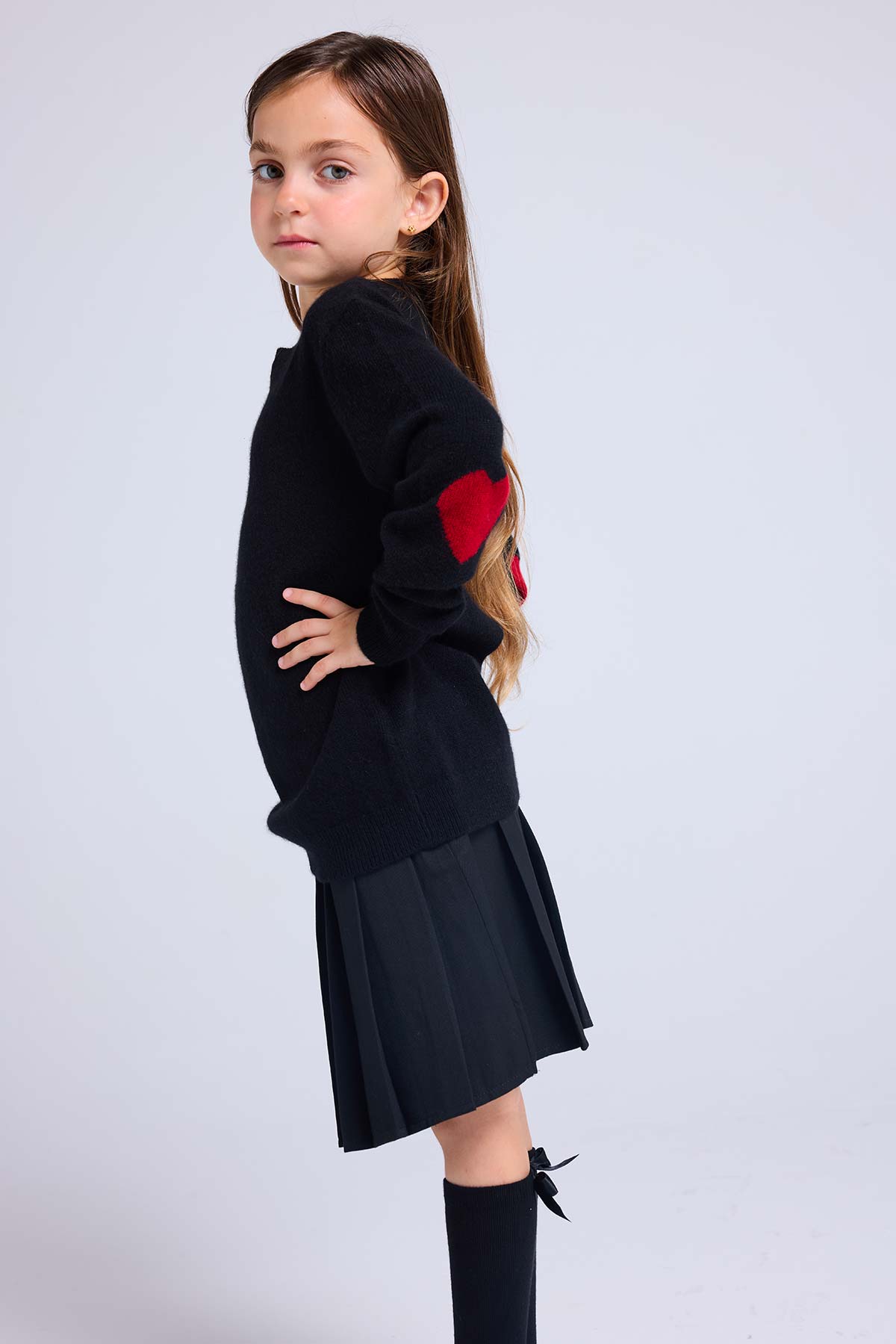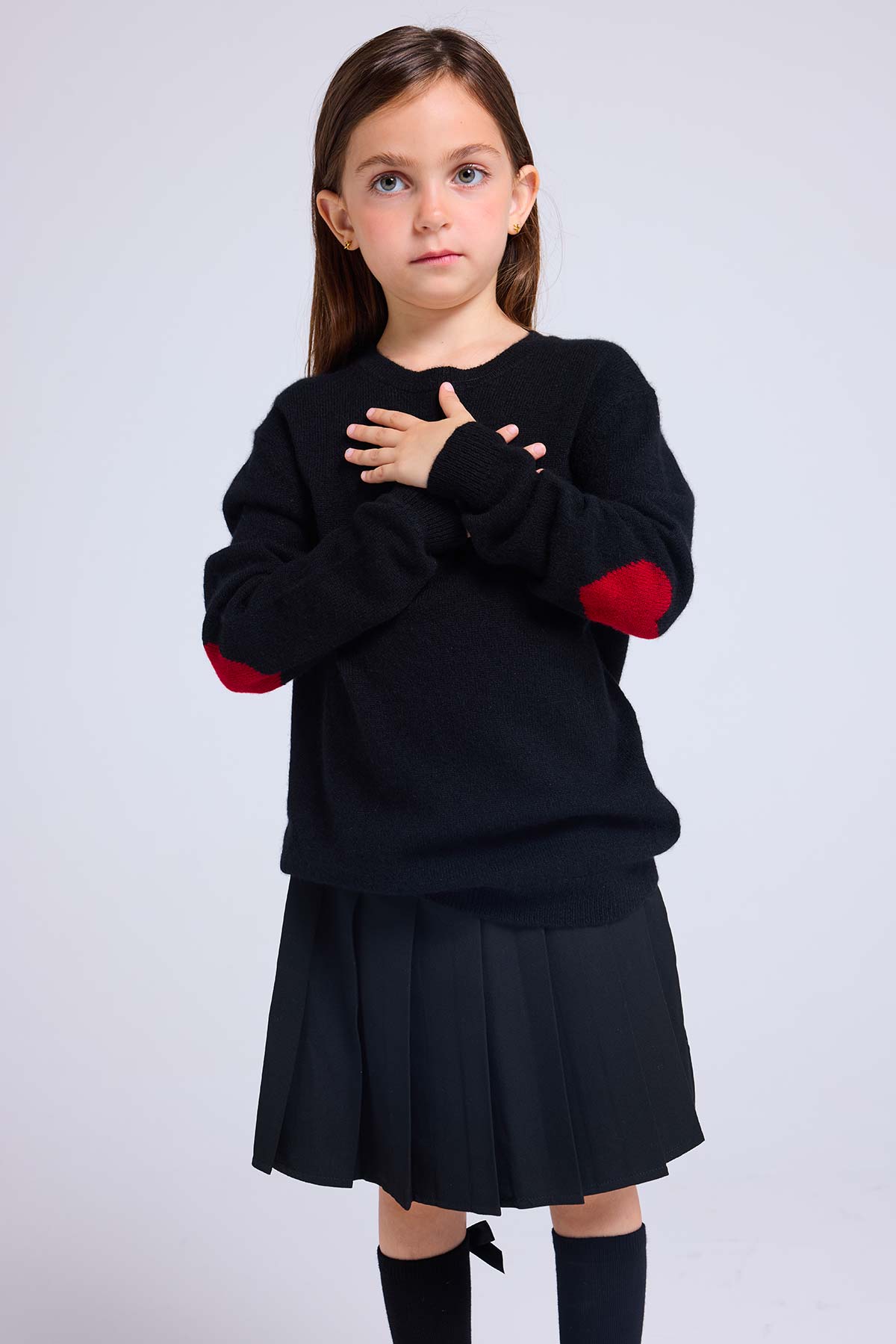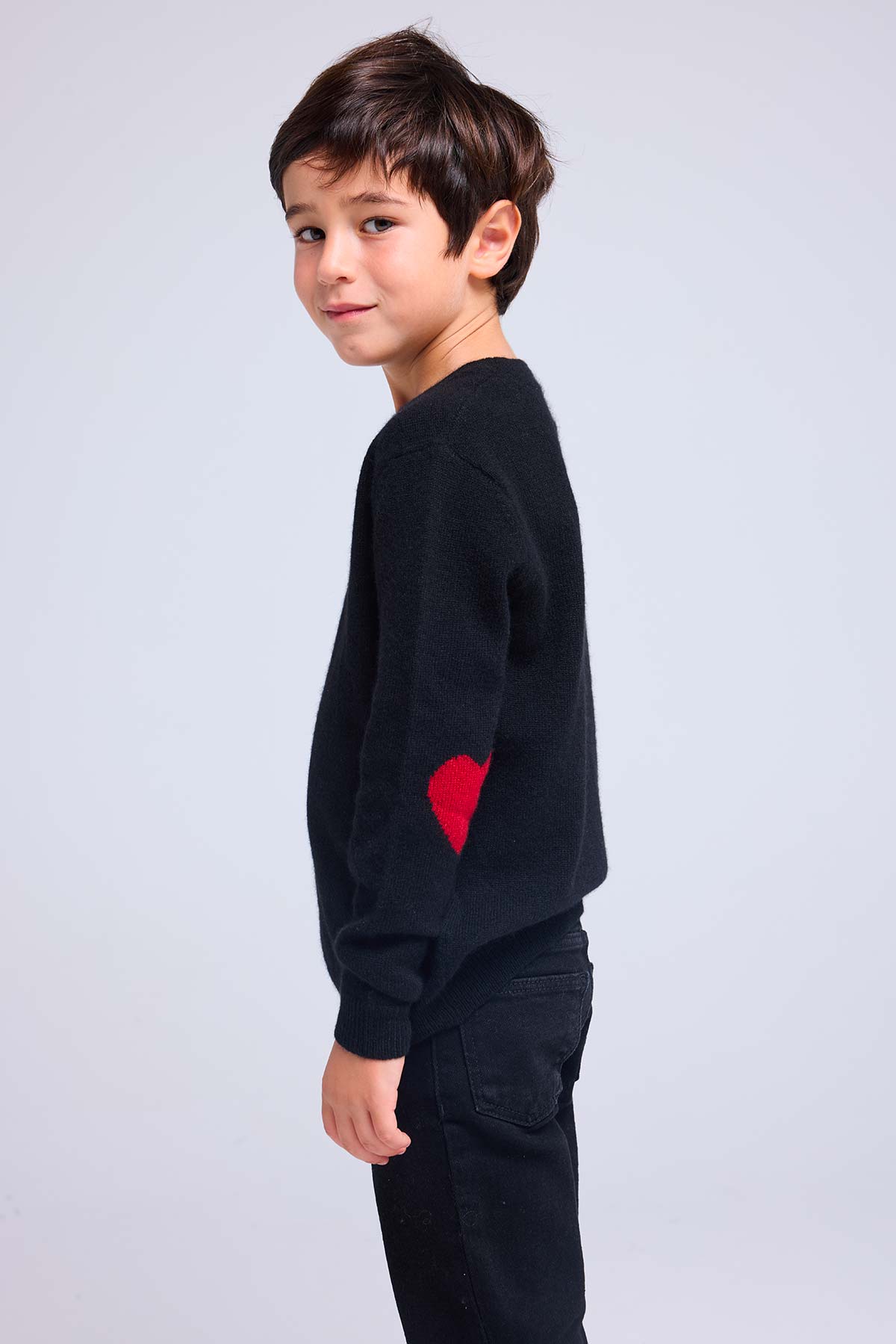Notre pull Giulia, notre best seller, comme chez maman et papa, dévoile une maille chaude et moelleuse, idéale pour les minis. Muni d’un col rond et de manches longues, ce pull en 100% cachemire infiniment doux affiche deux cœurs rose fluo sur les coudes.