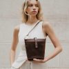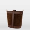 Découvrez le Sac Seau HELLE : un modèle structuré en cuir suédé, rehaussé de finitions en cuir lisse, pensé pour un porté sophistiqué au quotidien.