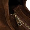 Découvrez la pièce ISAR en cuir de vachette suède couleur taupe, ce sac à main apporte une élégance décontractée à votre silhouette. Sa matière douce et sa fermeture zippée dorée s’allient à un format pratique et idéal pour vous accompagner au quotidien. Porté main ou épaule, il est le parfait allié d’un luxe discret et intemporel.