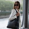 Cabas en cuir avec doublure en daim. Poche indépendante avec fermeture à glissière. Peut être porté à la main ou à l’épaule, avec une bandoulière ajustable et amovible.