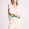 Confectionné d’un cachemire d’une infinie douceur, ce pull donnera un coup d’éclat à votre allure. Muni d’un col V, de manches longues ornées de bandes multicolores, et de bords côtelés, notre JAVA est destiné à tous les amoureux de maison héritage qui souhaitent ensoleiller leur vestiaire. Offrant une multitude de façons de le porter, il s’associe facilement aussi bien à un pantalon large, qu’à un jean.