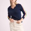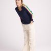 Confectionné d’un cachemire d’une infinie douceur, ce pull donnera un coup d’éclat à votre allure. Muni d’un col V, de manches longues ornées de bandes multicolores, et de bords côtelés, notre JAVA est destiné à tous les amoureux de maison héritage qui souhaitent ensoleiller leur vestiaire. Offrant une multitude de façons de le porter, il s’associe facilement aussi bien à un pantalon large, qu’à un jean.