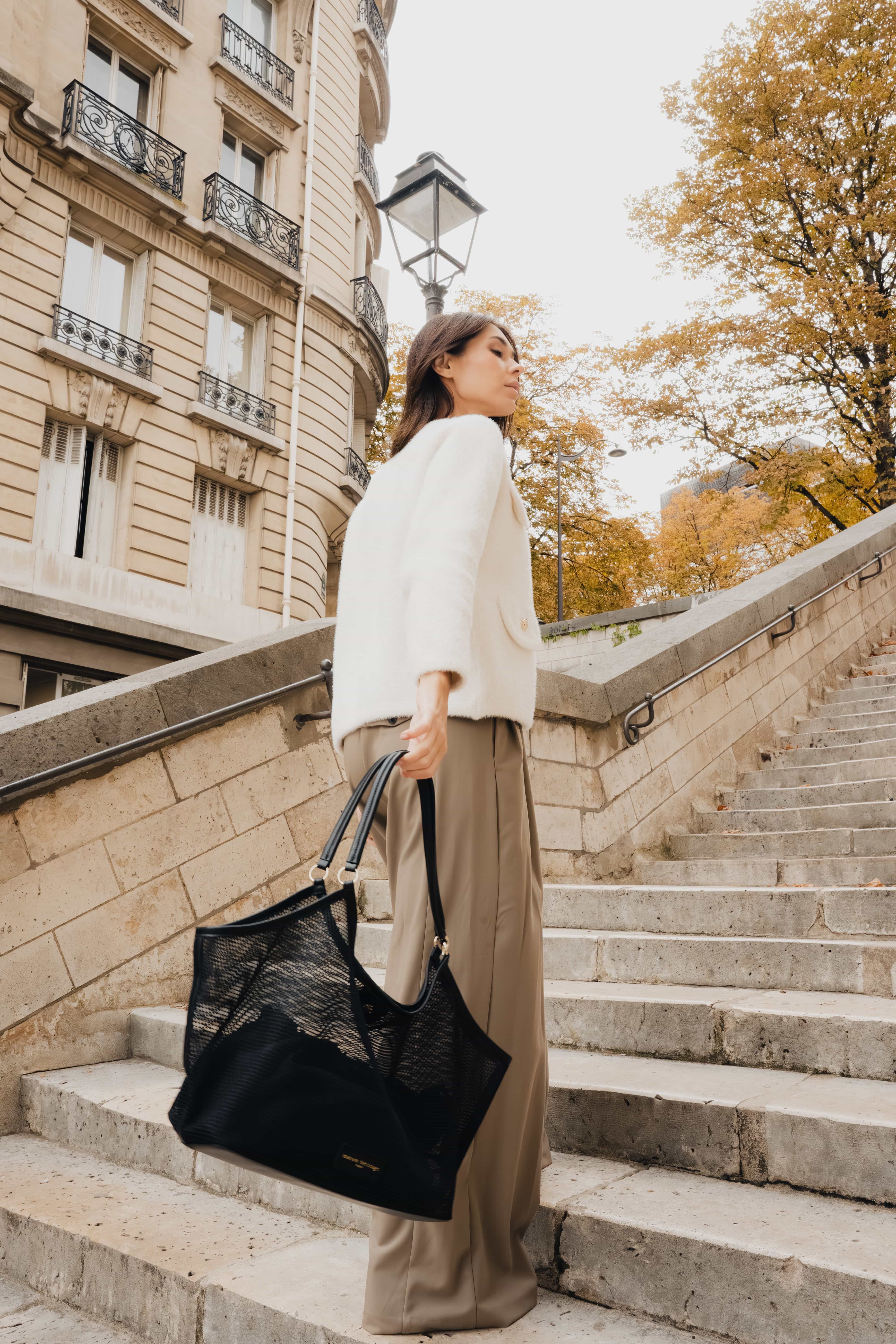 Découvrez le Sac Cabas en Maille : une pièce légère et moderne, idéale pour la belle saison. Son design ajouré s’accompagne d’une pochette en tissu pour garder vos essentiels en sécurité.