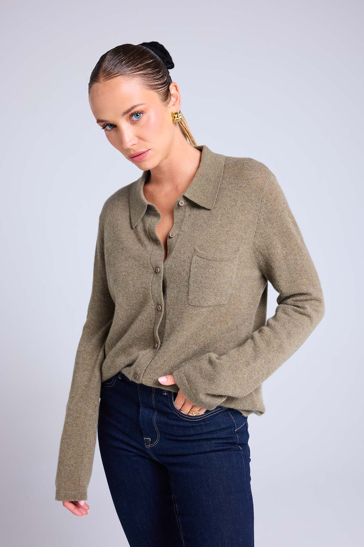 Inspirée par les traditionnelles chemises Oxford, cette chemise 100% cachemire, unie est une signature de la maison. Le col et la poche sur le devant, reprennent les codes des chemises Oxford.