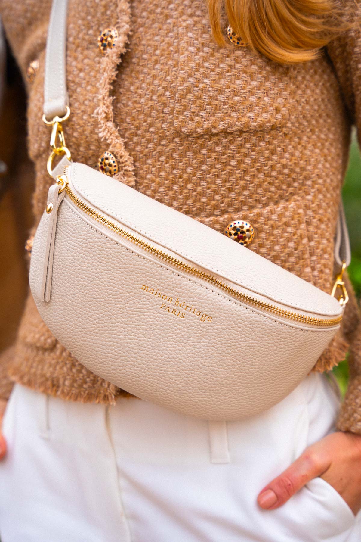 Sac banane, bandoulière ajustable et amovible.