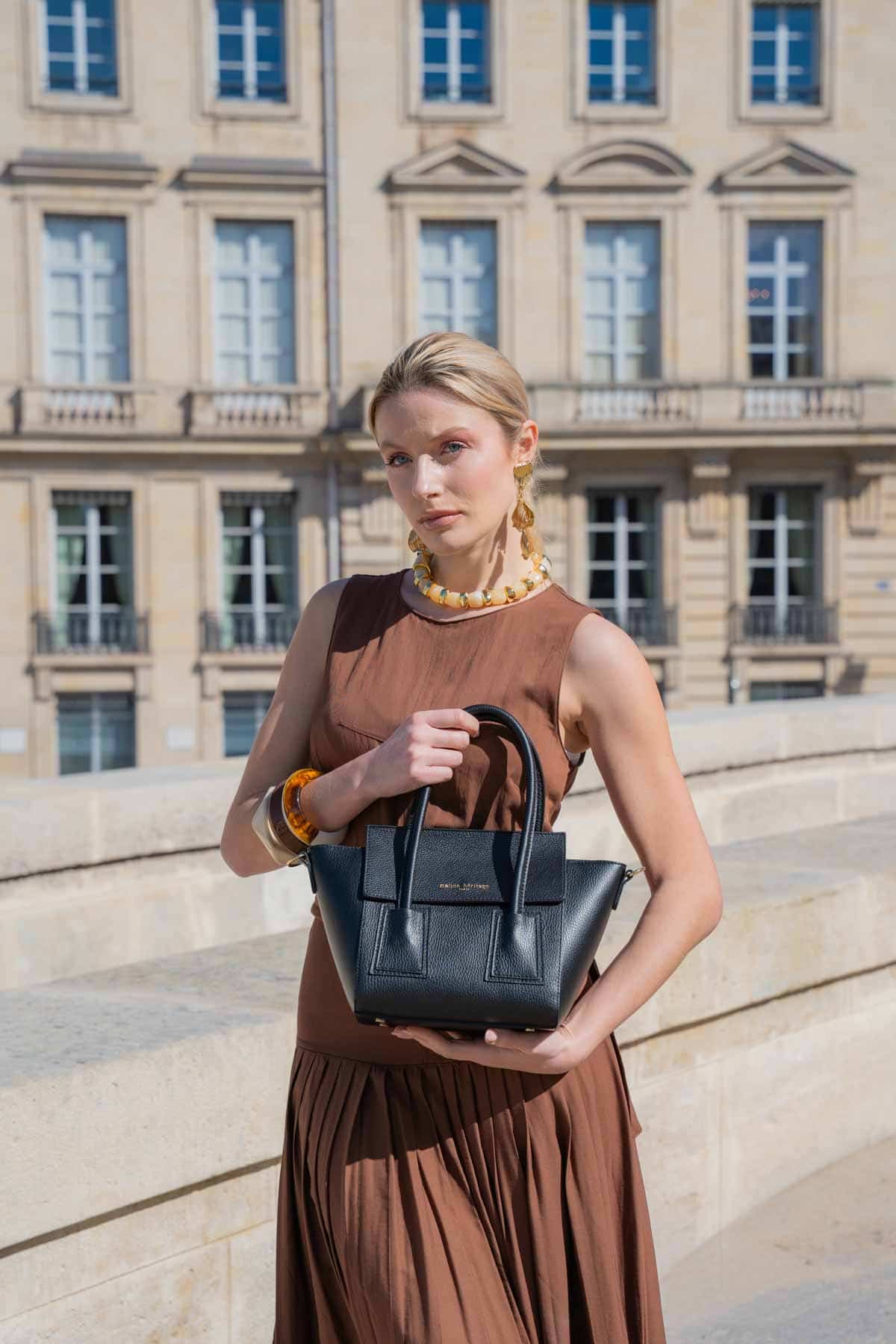Découvrez le sac LAZZO, une pièce au design captivant qui se distingue par son design raffinés. Sa silhouette structurée, complétée par des anses et un rabat élégant, incarne une prestance unique. Compact mais généreux dans ses volumes, il est l’accessoire idéal pour un sac de caractère, capable de transformer une tenue simple en un look sophistiqué et affirmé.