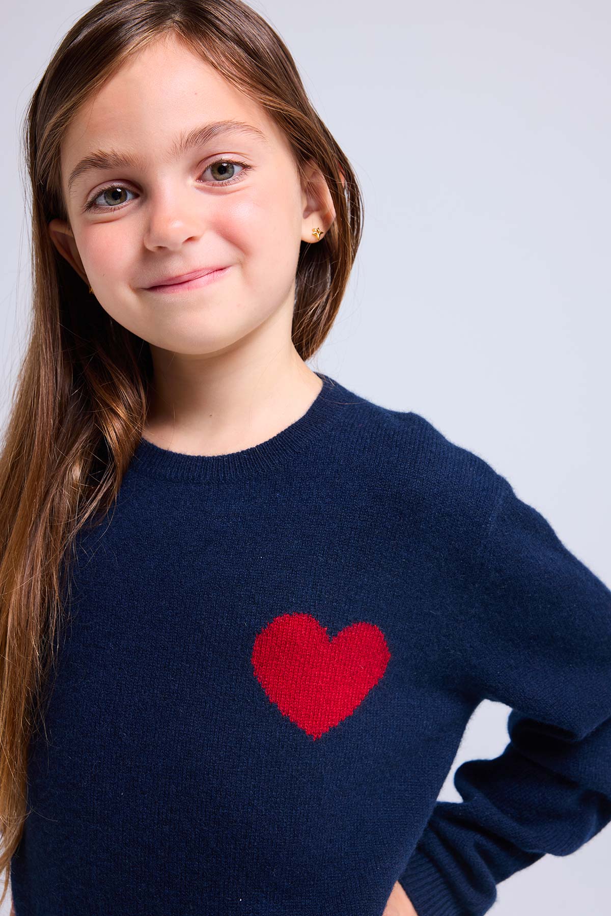 Notre pull Lenny, notre best seller, comme chez maman et papa, dévoile une maille chaude et moelleuse, idéale pour les minis. Muni d’un col rond et de manches longues, ce pull en 100% cachemire infiniment doux affiche un cœur rouge sur la poitrine.