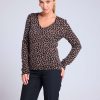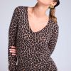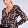 LEONIDA – Pull col V en 100% cachemire imprimé léopard