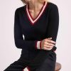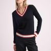 Maison Héritage croit en un vestiaire classique avec un attrait durable. S’inspirant des styles de cricket et du style collégial, ce pull est tricoté en 100% cachemire chaud et sublimé par un décolté en V, en contrastes blanc et rouge, tout comme les rib aux poignets et en bas du corps. Portez le vôtre avec un jean, un pantalon ou une jupe, ou sur une jolie chemise Oxford.